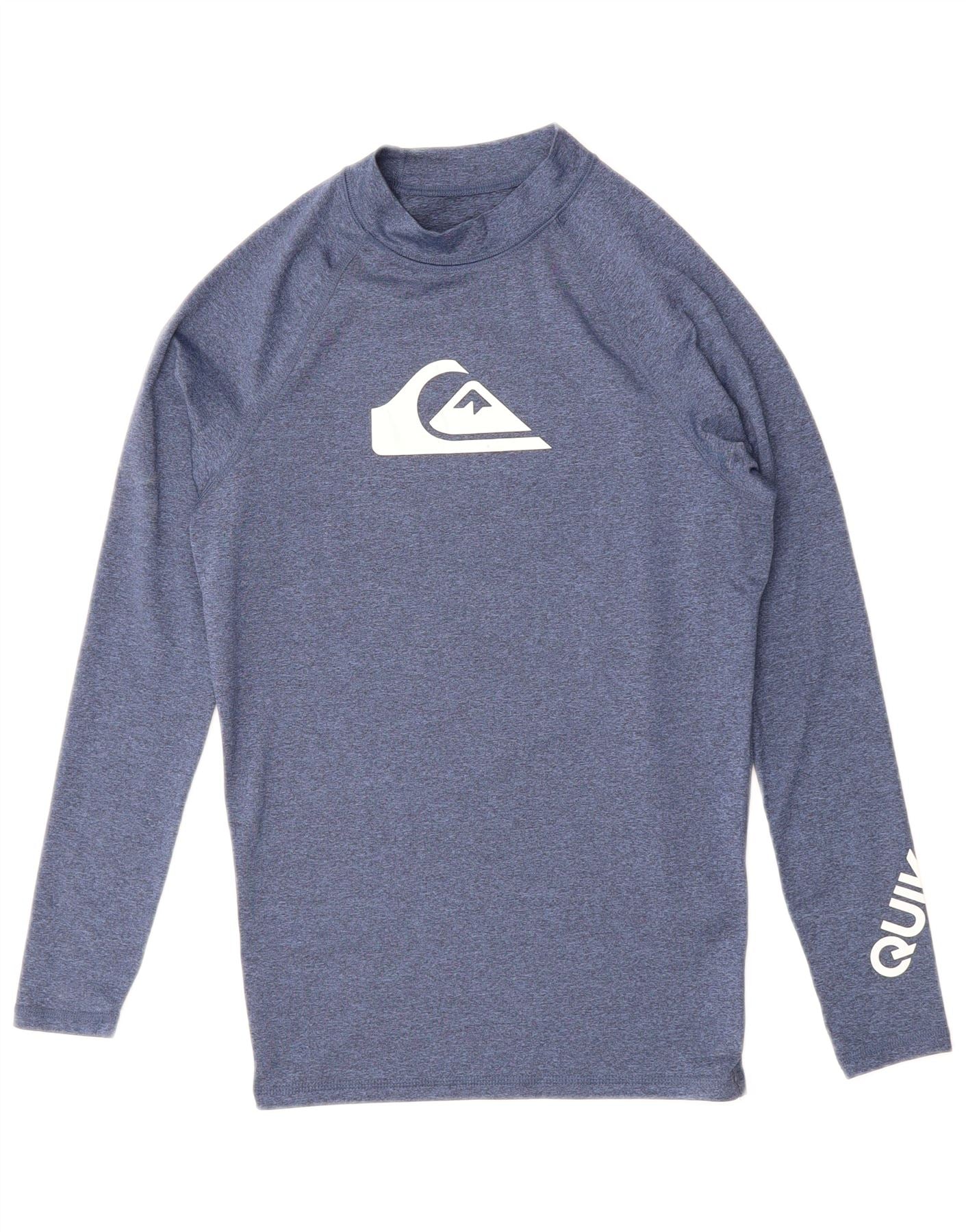 QUIKSILVER Womens Graphic Top Long Sleeve UK 10 Small Navy Blue Polyester