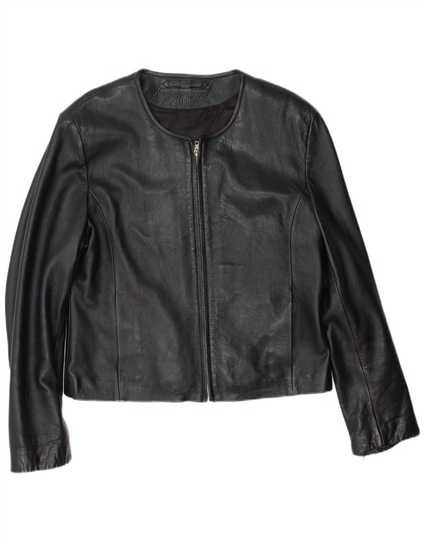 RABERG Damen Crop Lederjacke EU 42 Großes schwarzes Leder