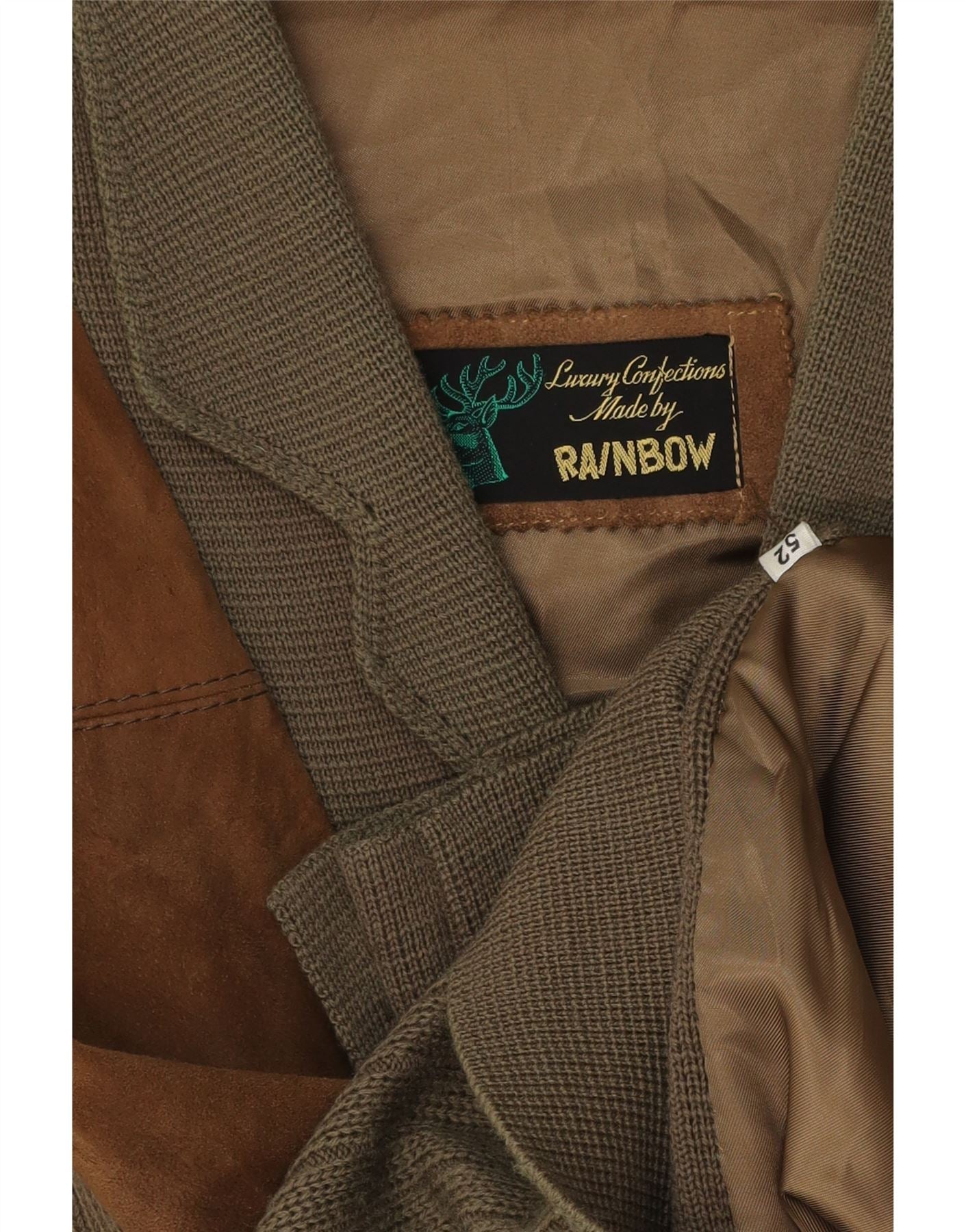 - KI-Beschreibung: Ein stilvoller Regenbogen-Cardigan-Pullover für Herren mit klassischem Design und einer Mischung aus Texturen. Die Vorderseite ist mit satten braunen Wildledereinsätzen und zwei funktionellen Taschen verziert, ergänzt durch einen traditionellen Knopfverschluss. Die Ärmel und der Rücken sind aus einem strukturierten Strickstoff in einem passenden olivgrünen Farbton gefertigt. Der Schalausschnitt verleiht ihm einen Hauch von Raffinesse und macht es zu einem vielseitigen Kleidungsstück für den Lagenlook. Dieser Cardigan hat eine normale Passform und ist ideal für lässige oder elegante Anlässe.