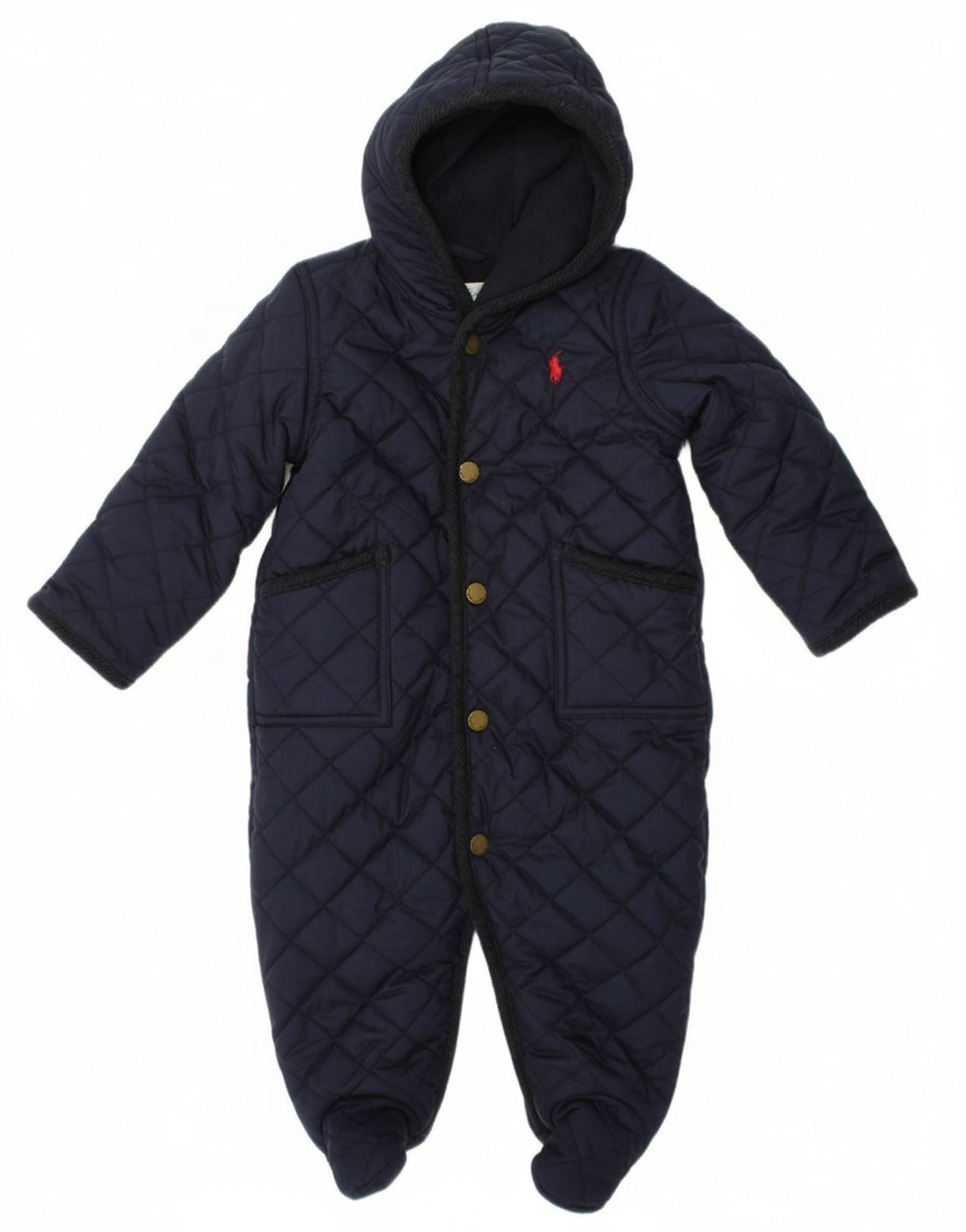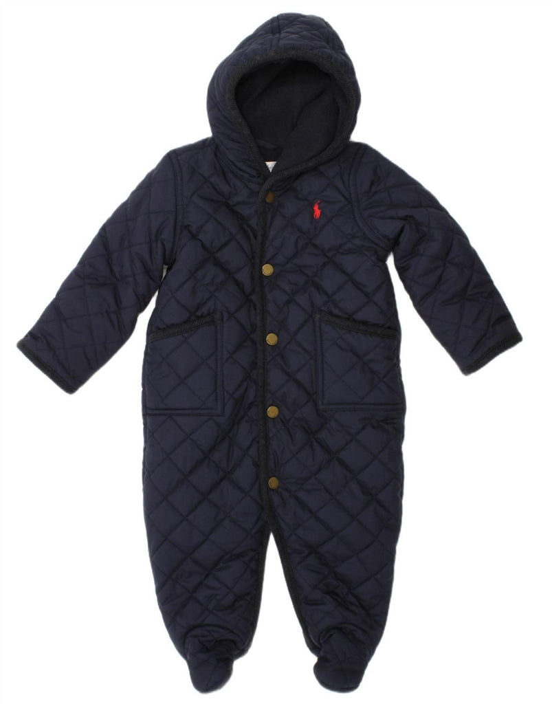 RALPH LAUREN Baby Boys Hooded Long Sleeve Jumpsuit 6-9 Months Navy Blue