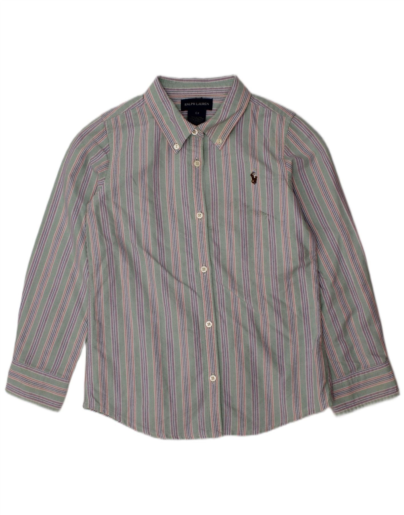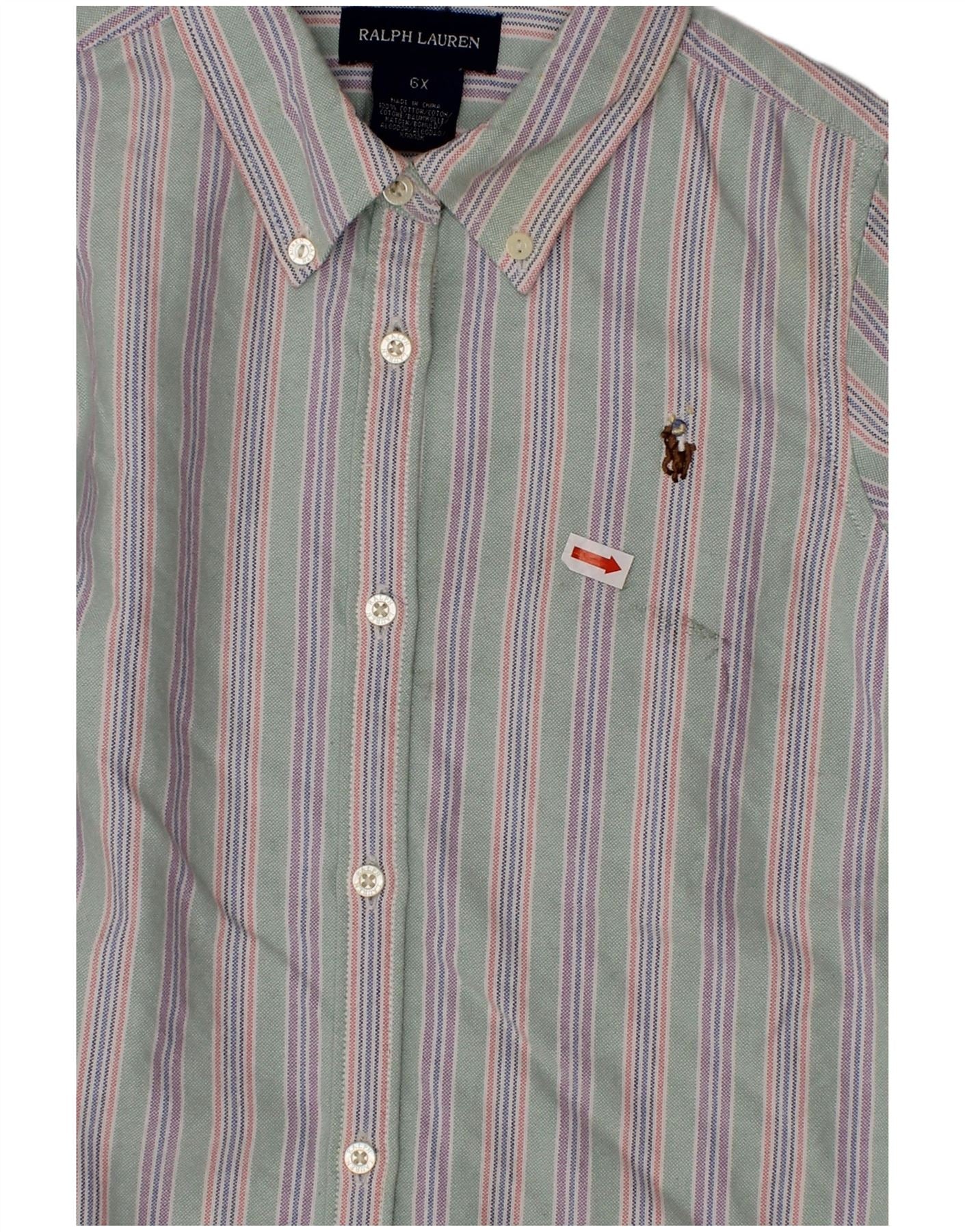 RALPH LAUREN Flanellhemd für Jungen, 5–6 Jahre, grün gestreift, Baumwolle