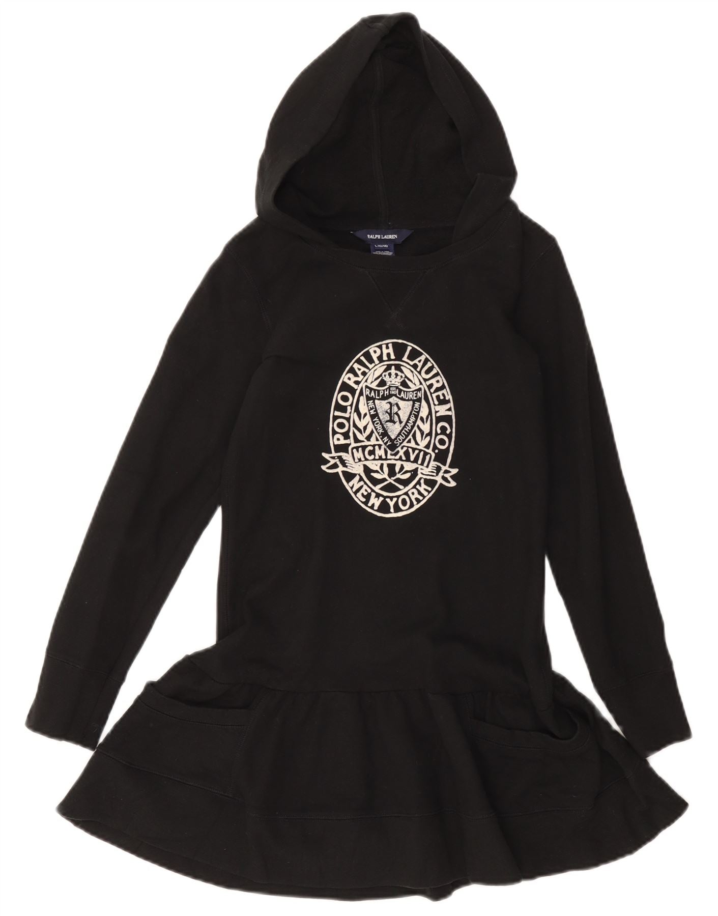 Ralph Lauren Kleid für Mädchen mit Grafik und tiefer Taille, 12–13 Jahre, Größe L, Schwarz, Baumwolle
