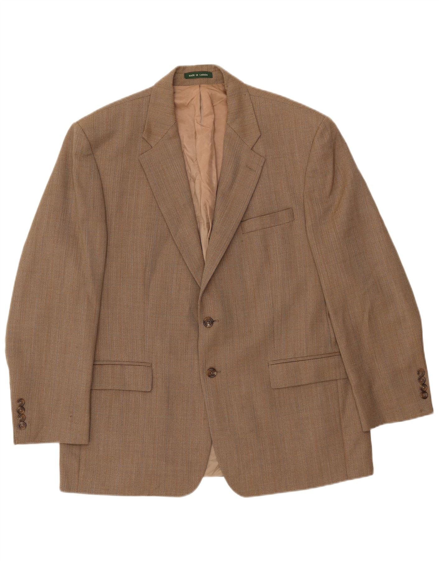 Ralph Lauren Herren-Blazer mit 2 Knöpfen, UK 44, XL, beige, Fischgrätenmuster, Wolle