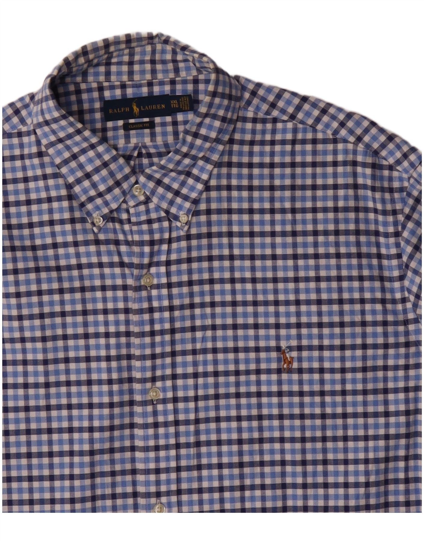 Ralph Lauren Herren-Hemd mit klassischer Passform, 2XL, blaues Gingham-Baumwolle