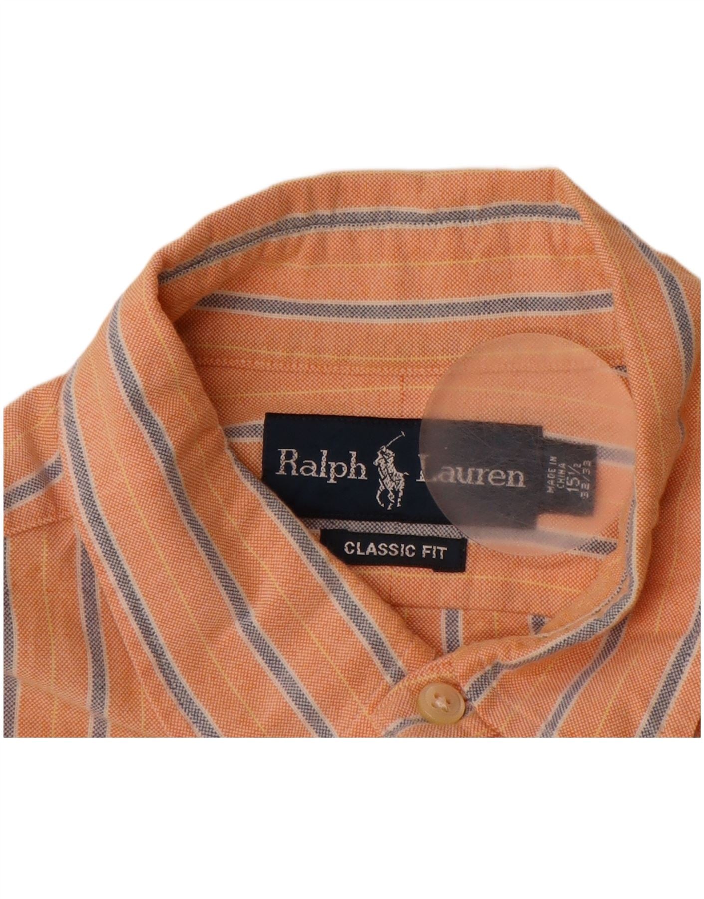 RALPH LAUREN Herrenhemd mit klassischer Passform, Größe 15 1/2, mittelorange gestreift