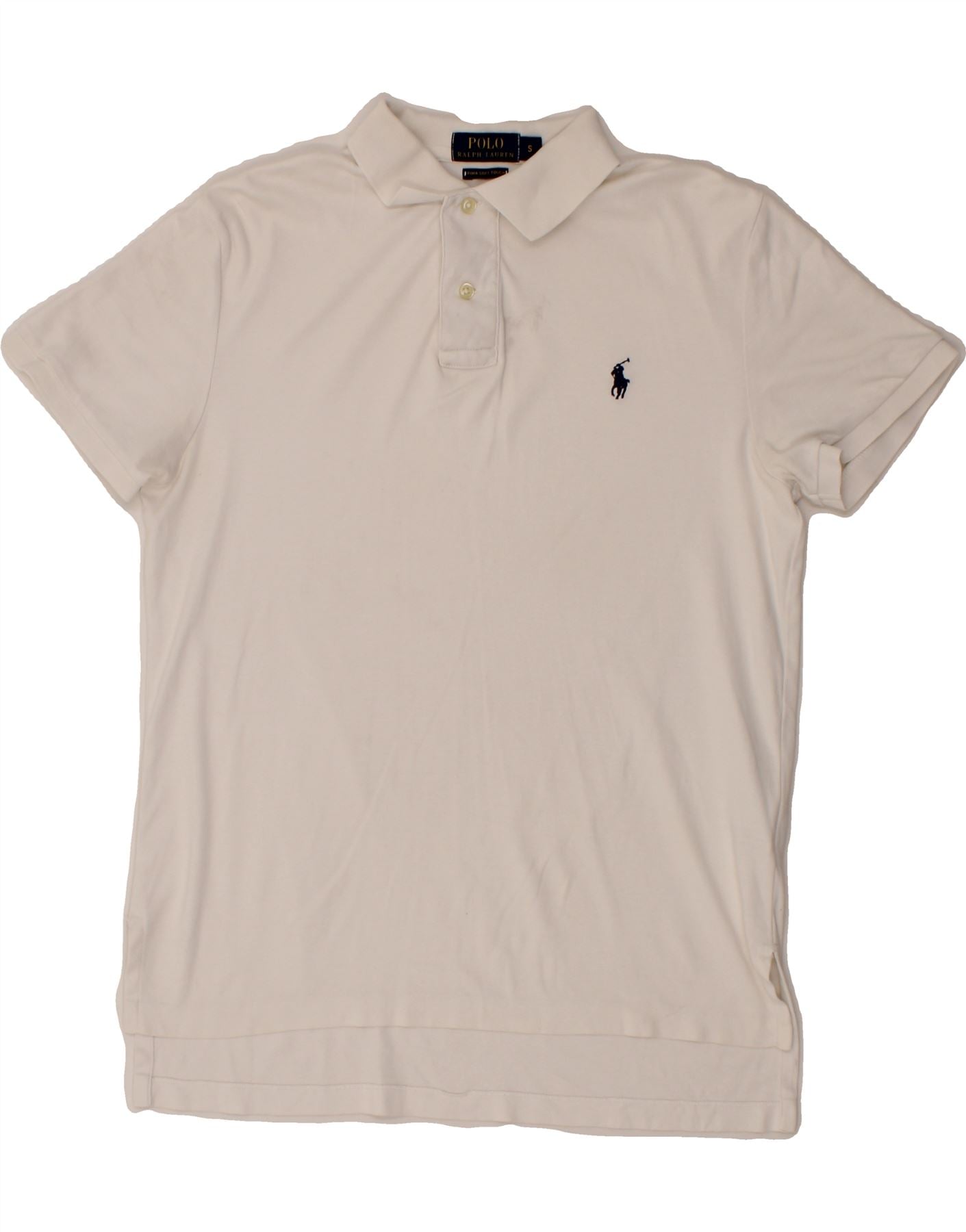 RALPH LAUREN Mens Slim Fit Polo Shirt Small White Cotton Preppy