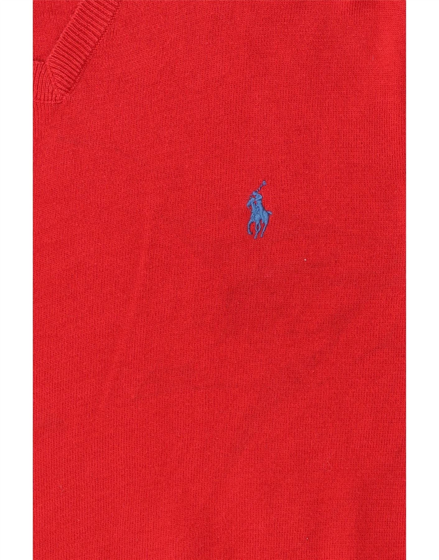 RALPH LAUREN Mens V-Neck Jumper Sweater Medium Red Cotton