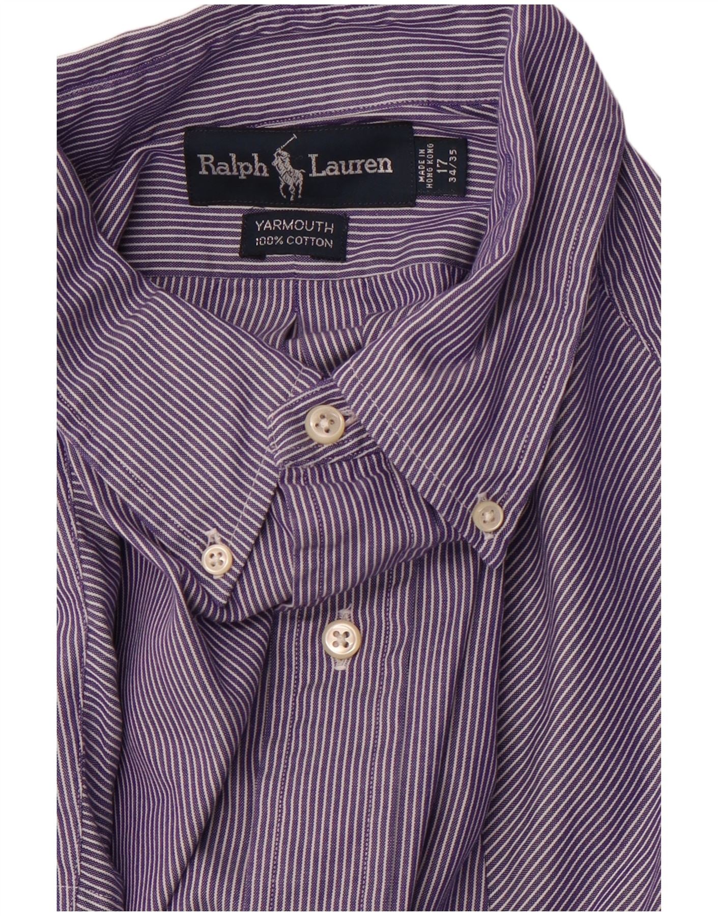 RALPH LAUREN Herren Yarmouth Loose Fit Hemd Größe 17 XL Lila Nadelstreifen