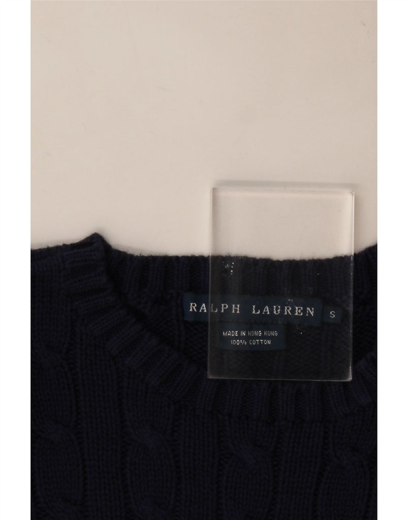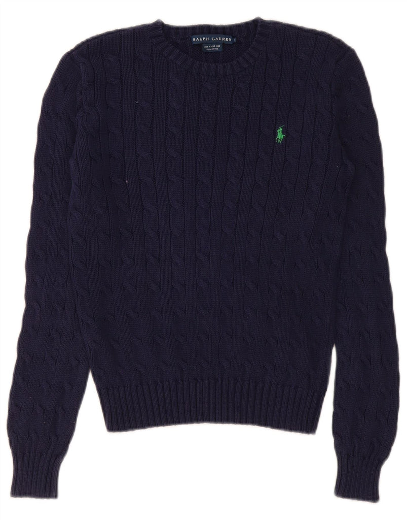 RALPH LAUREN Womens Crew Neck Jumper Sweater UK 10 Small Navy Blue Cotton