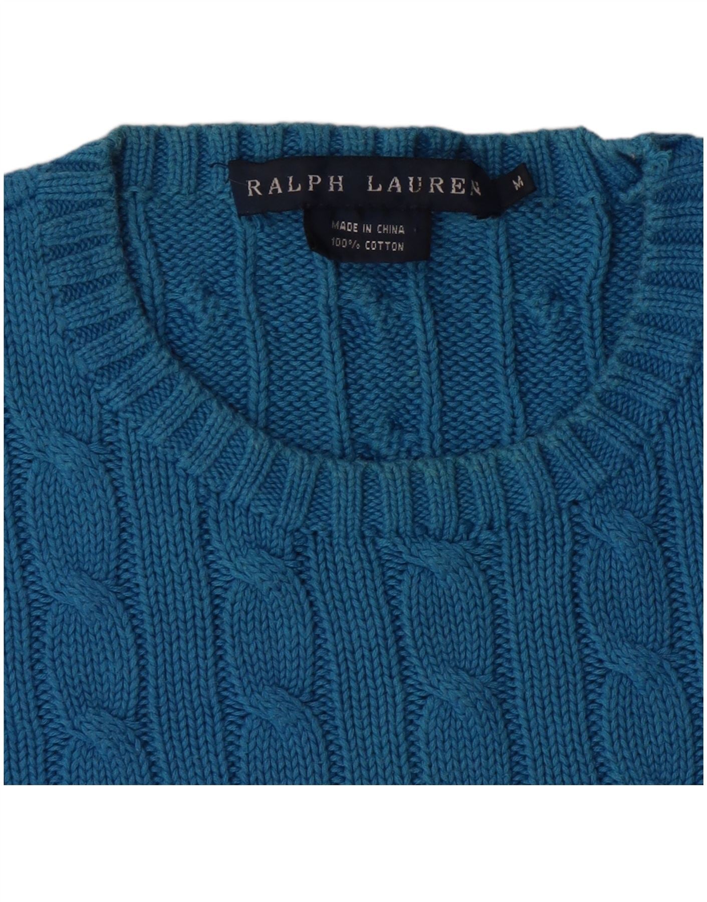 RALPH LAUREN Damen-Pullover mit Rundhalsausschnitt, UK 12, mittelblaue Baumwolle