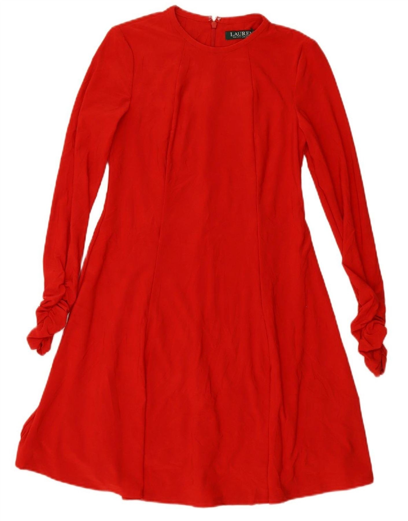 RALPH LAUREN Womens Long Sleeve A-Line Dress US 2 XS Red Polyester