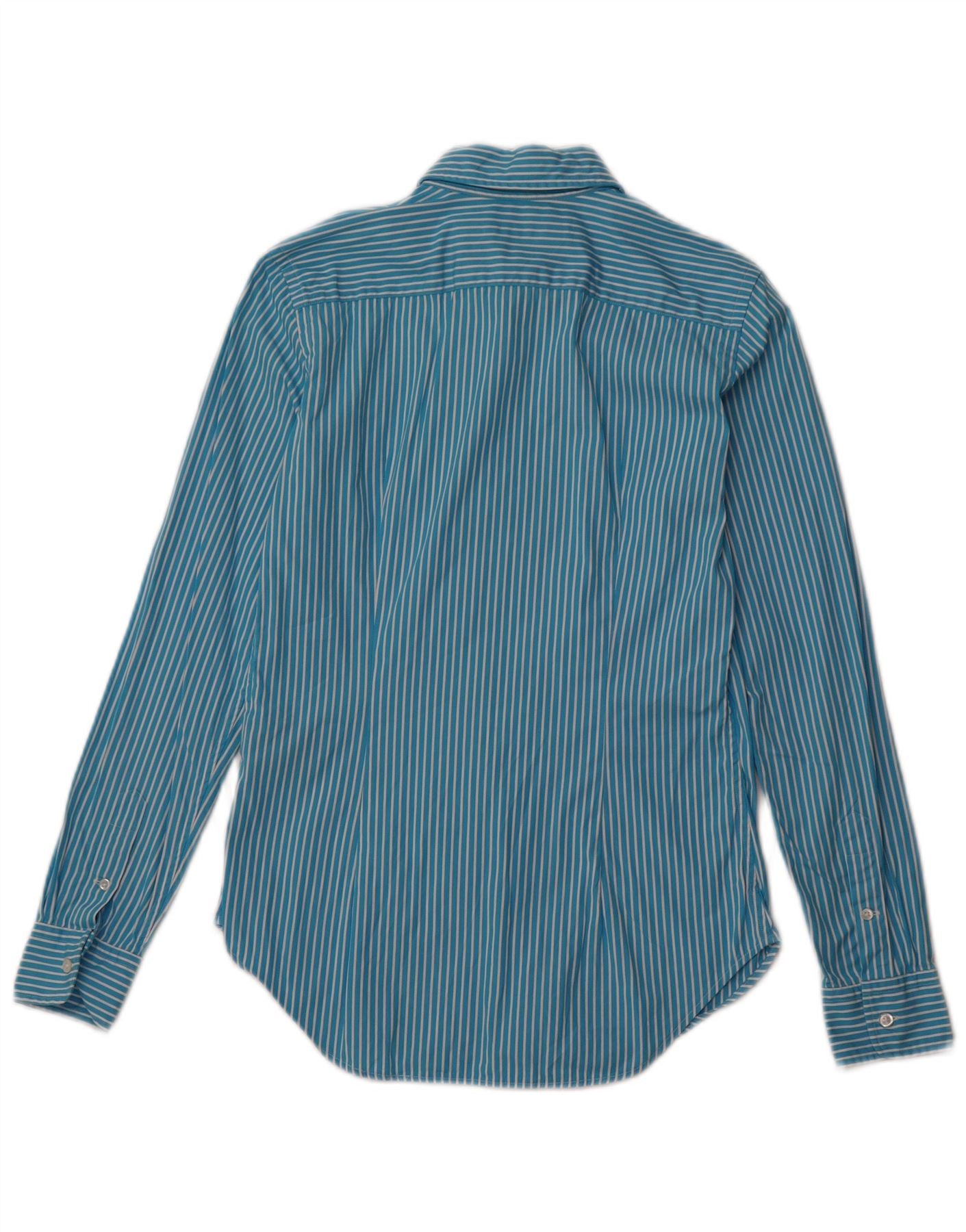 RALPH LAUREN Damen-Oversize-Hemd, US 4, kleine blaue Nadelstreifen-Baumwolle