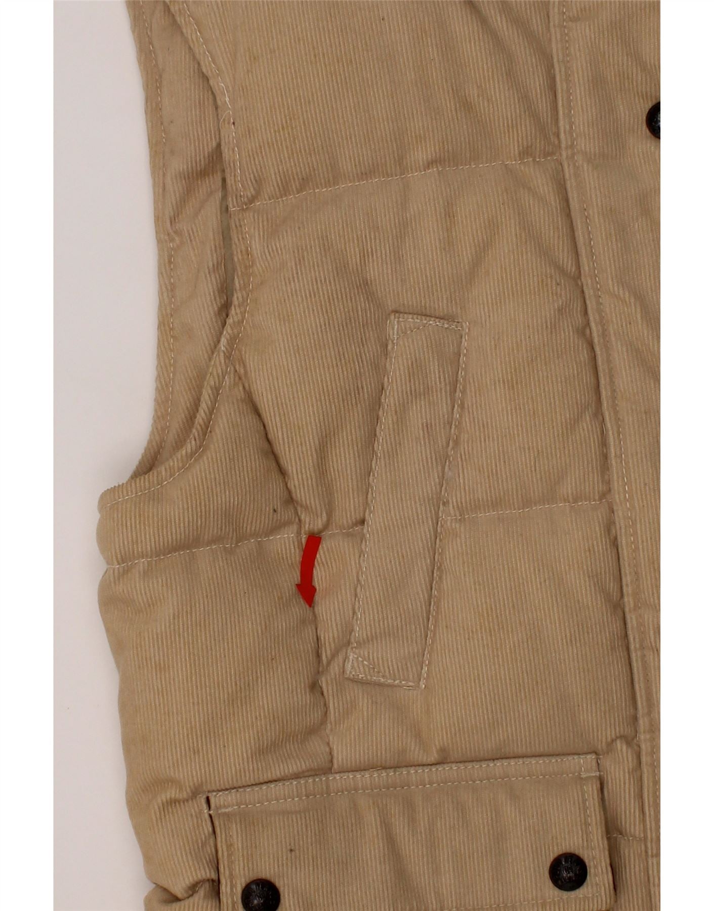 RALPH LAUREN Womens Padded Gilet UK 14 Medium Beige Pinstripe Cotton