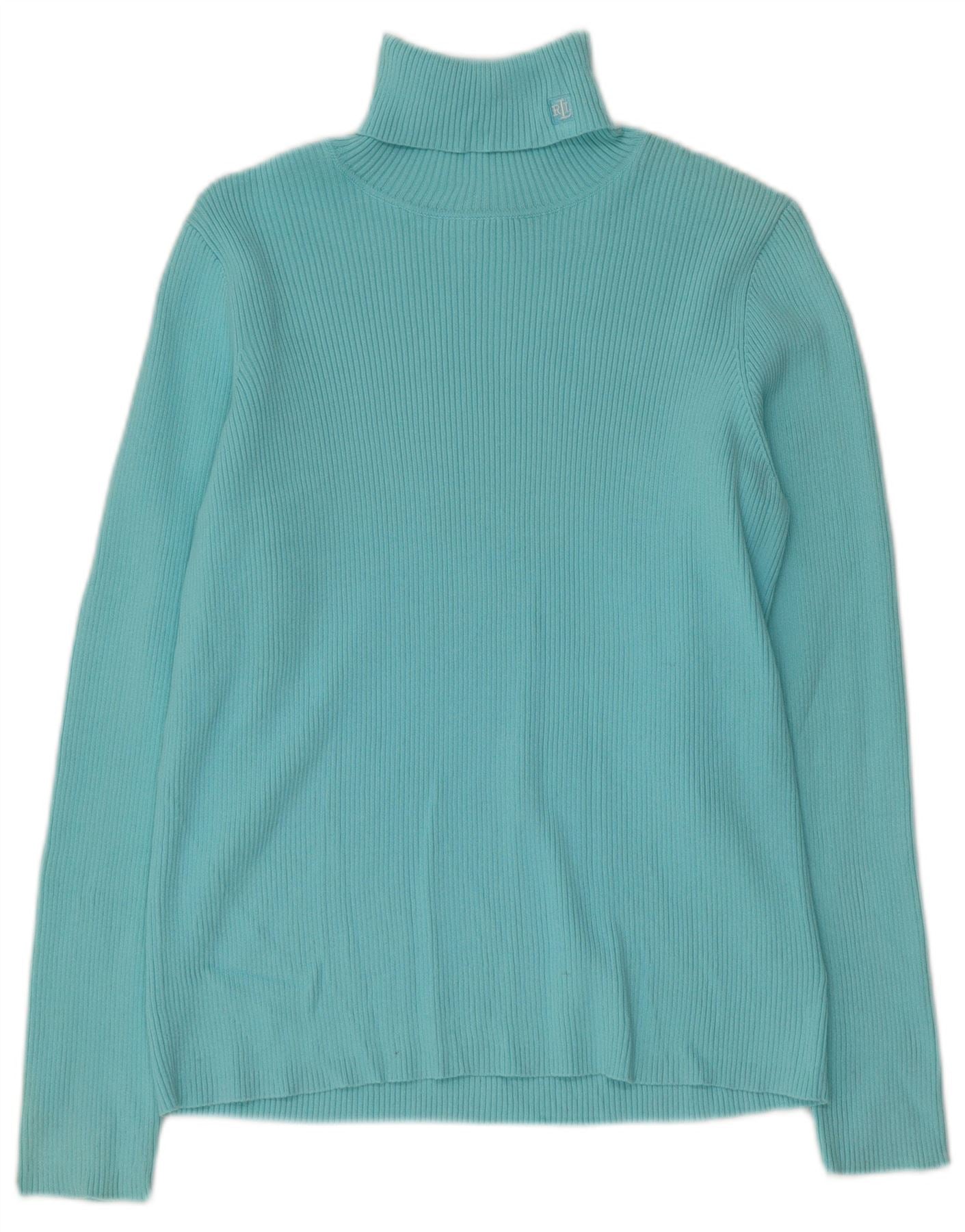 RALPH LAUREN Damen-Pullover mit Rollkragen, Gr. 14, Größe L, Blau, Baumwolle