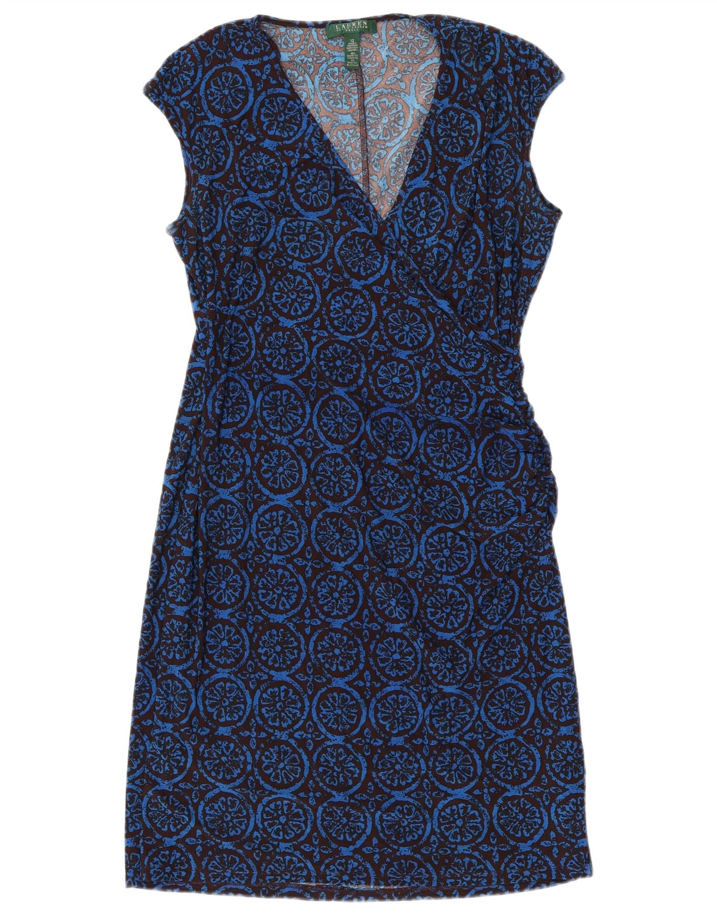 RALPH LAUREN Damen Ärmelloses Etuikleid US 12 Großes blaues Blumenmuster