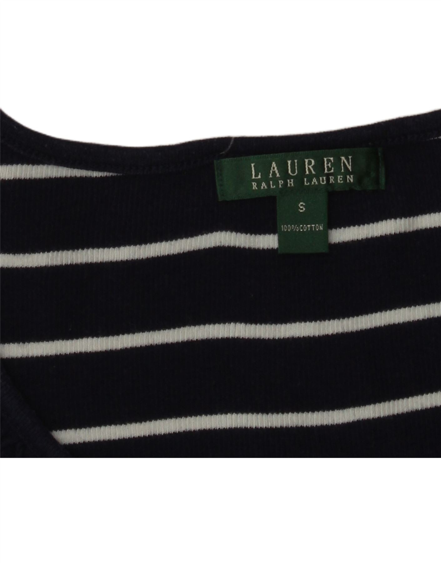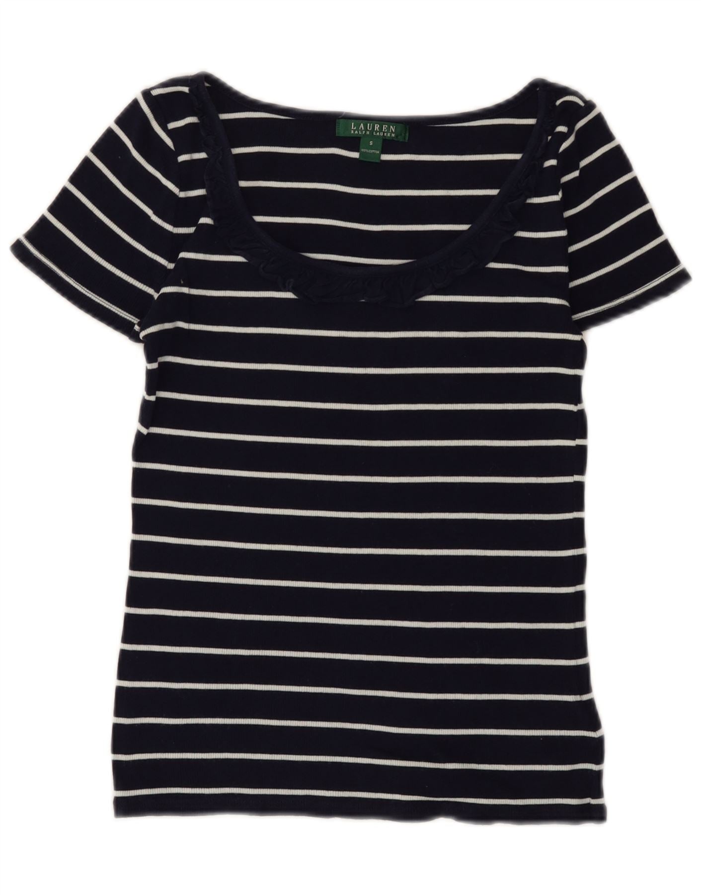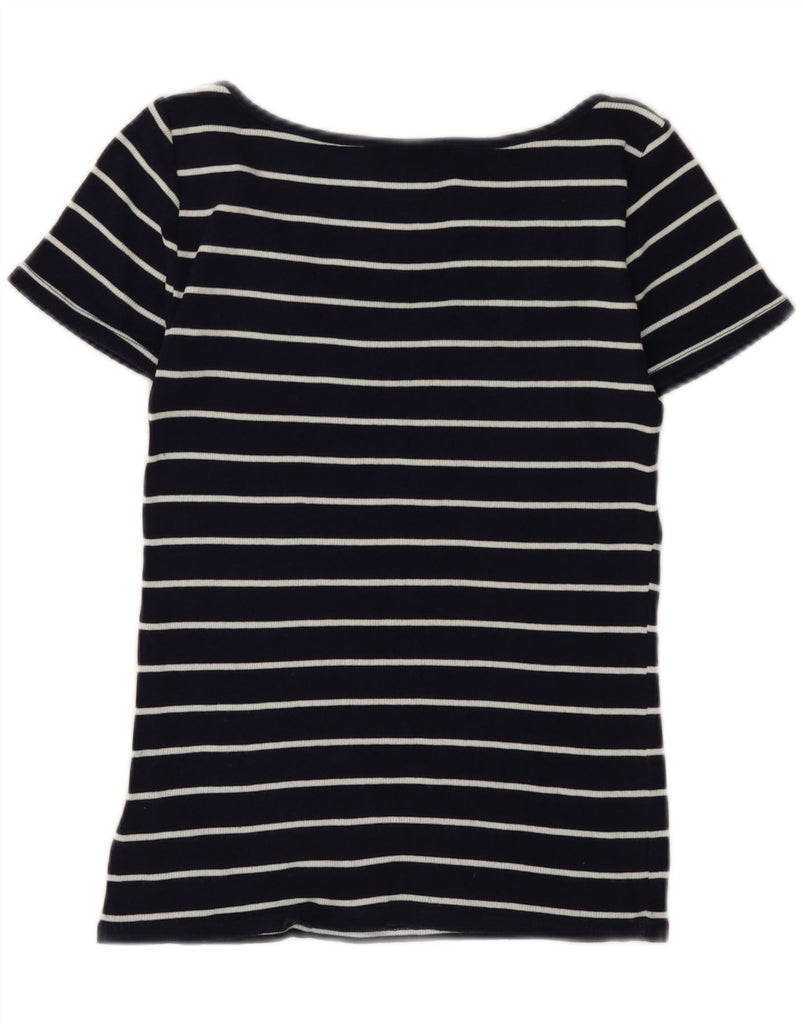 RALPH LAUREN Womens T-Shirt Top UK 8 Small Navy Blue Striped Cotton