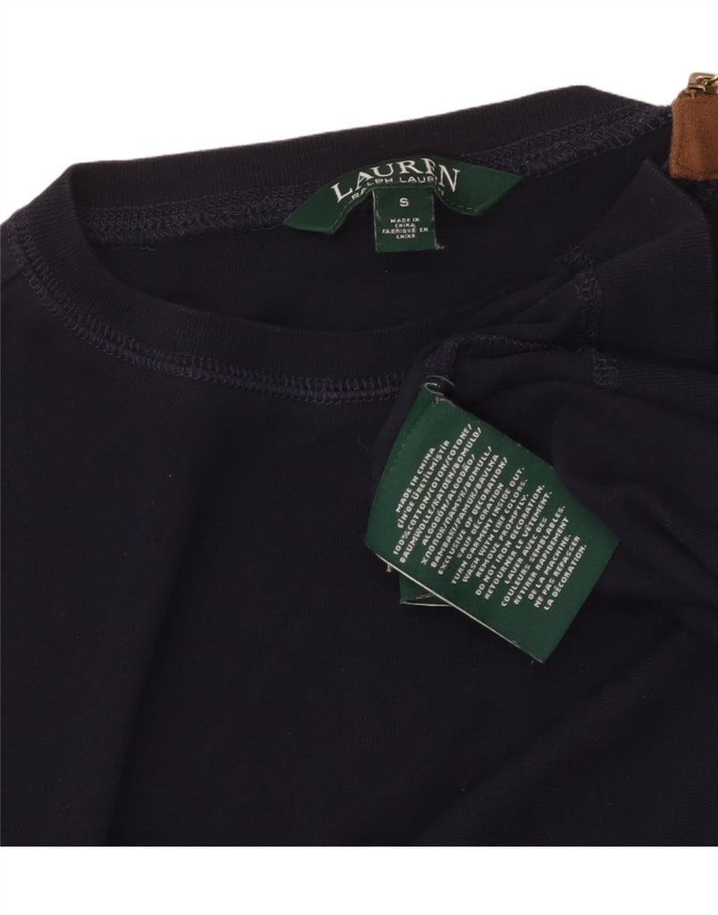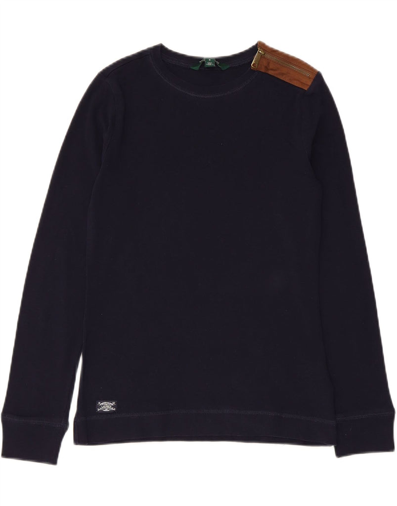 RALPH LAUREN Womens Top Long Sleeve UK 10 Small Navy Blue Cotton