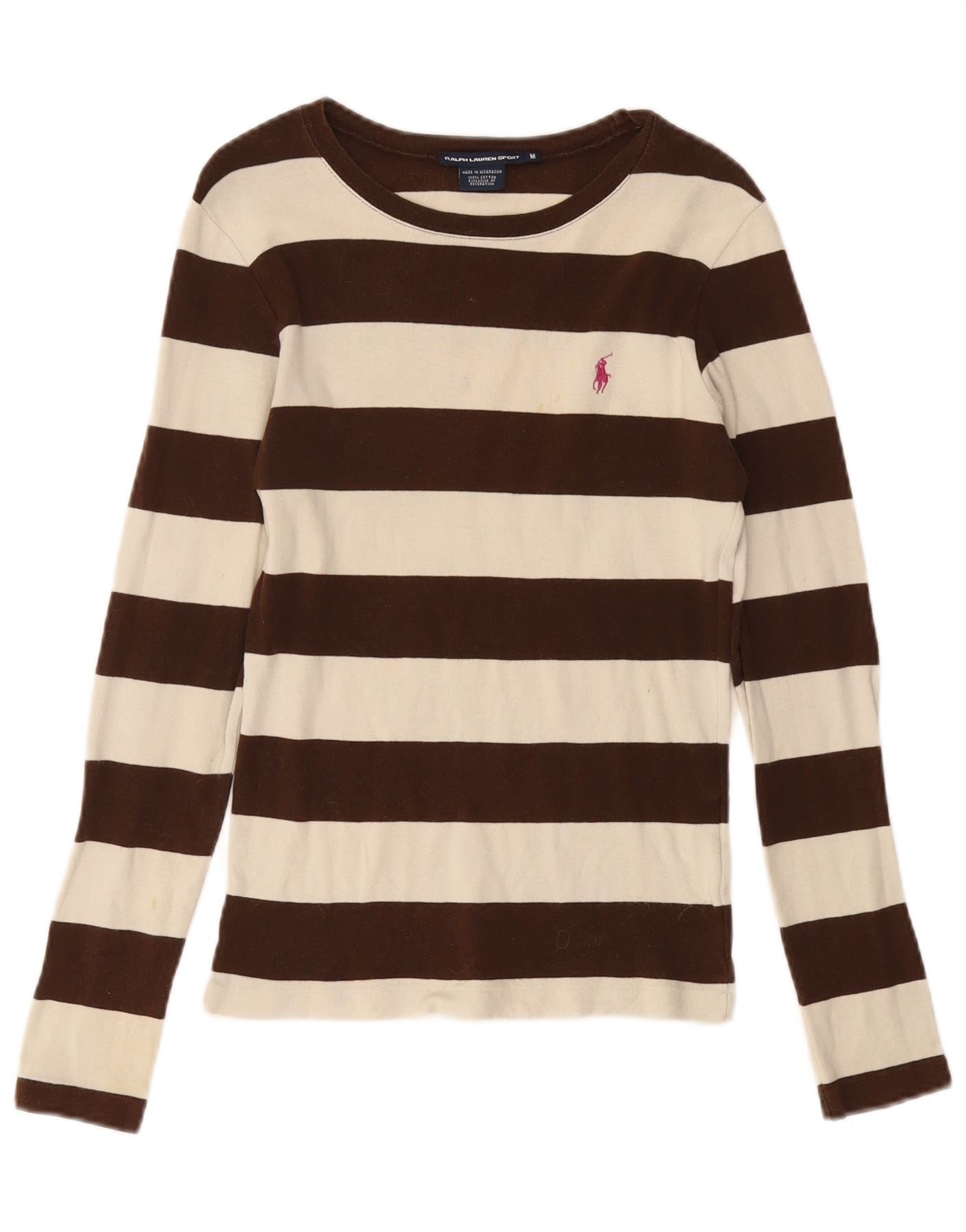 Home > Damen > Depop-Kleidung > RALPH LAUREN Damen Top Langarm UK 14 Mittelbraun gestreift Baumwolle