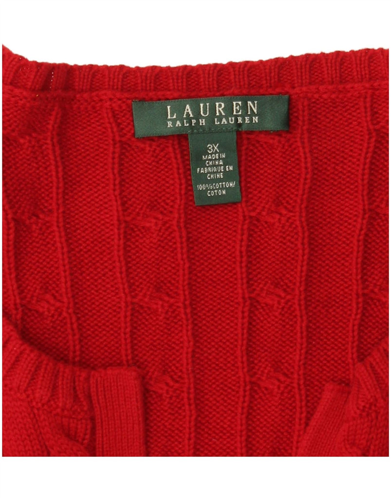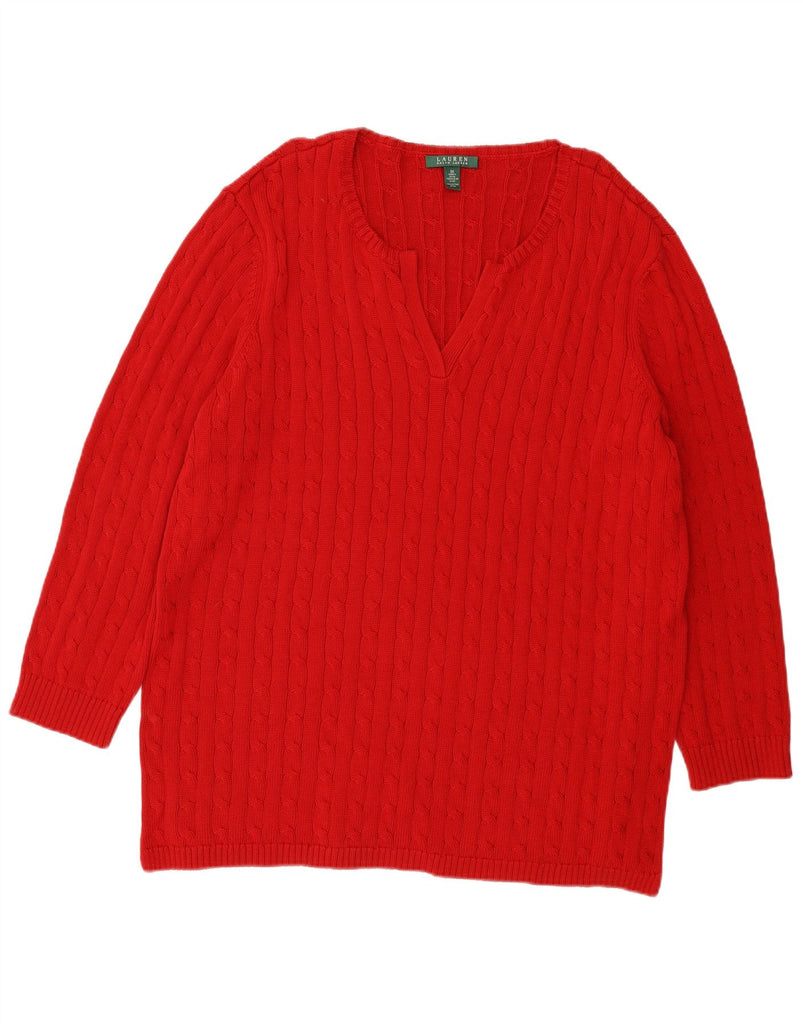 RALPH LAUREN Womens V-Neck Jumper Sweater UK 22 3XL Red Cotton