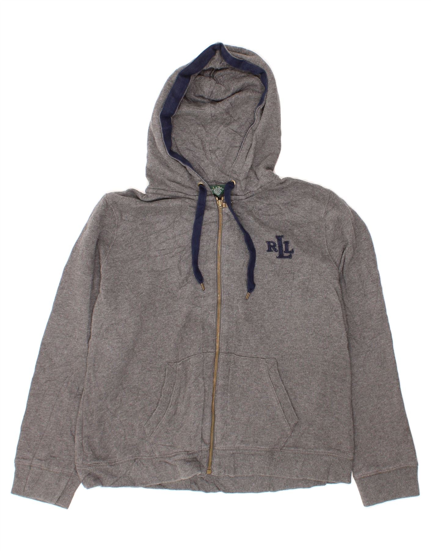 RALPH LAUREN Womens Zip Hoodie Sweater UK 18 XL Grey Cotton