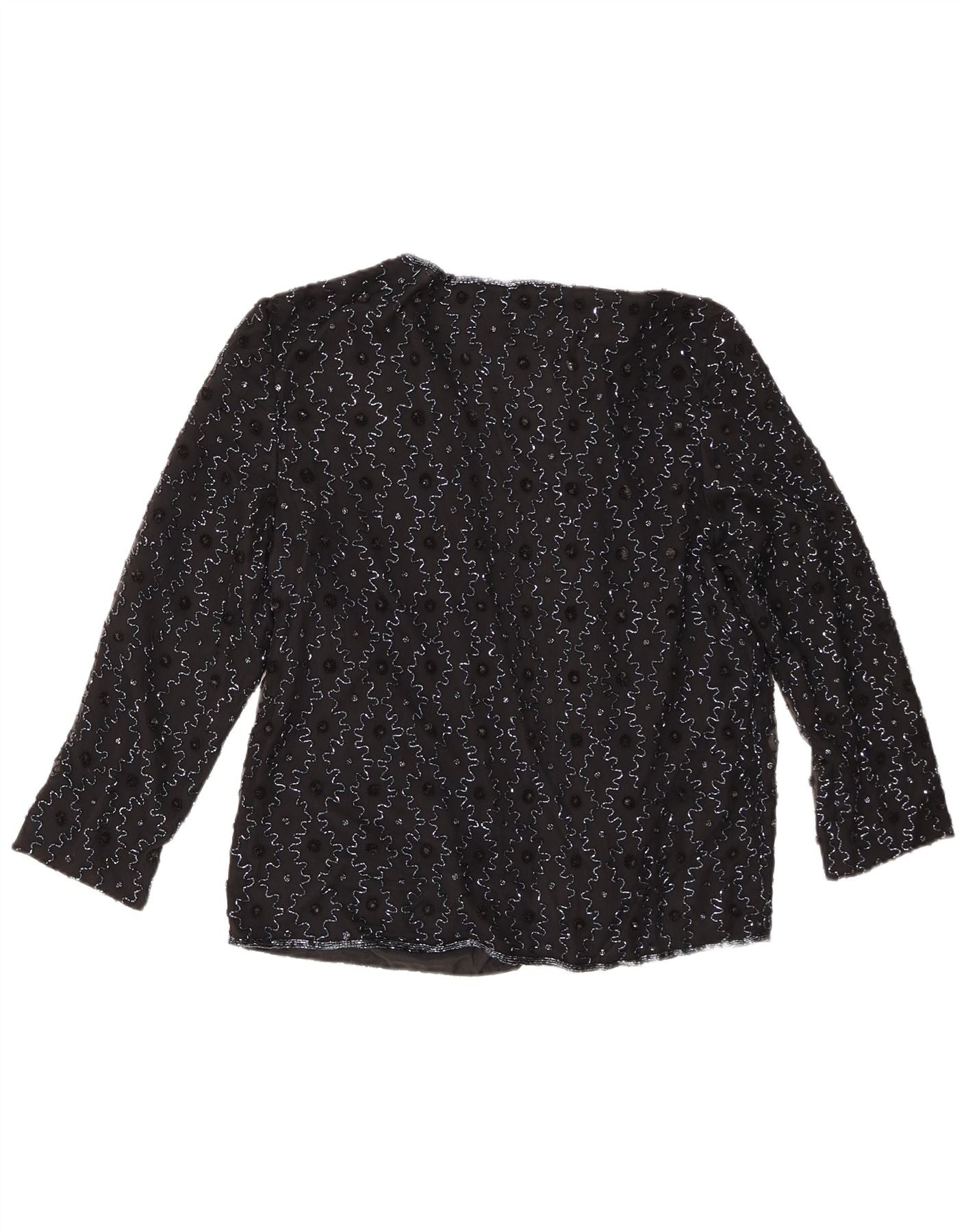 Seltene offene Damen-Blazerjacke, UK 16, große schwarze Seide
