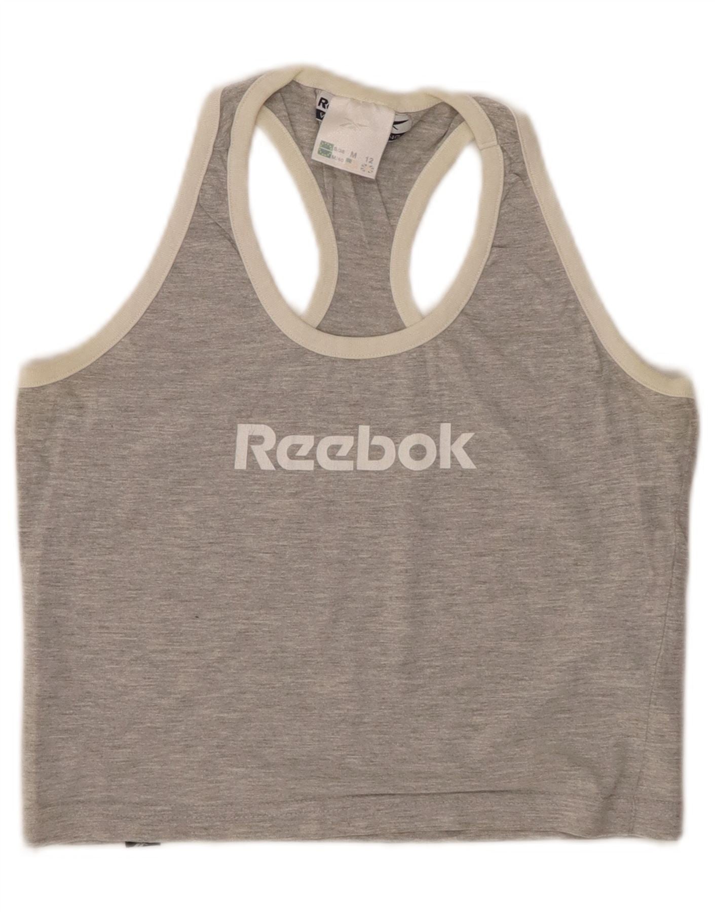 REEBOK Womens Crop Graphic Vest Top UK 12 Mittelgrau gefleckte Baumwolle