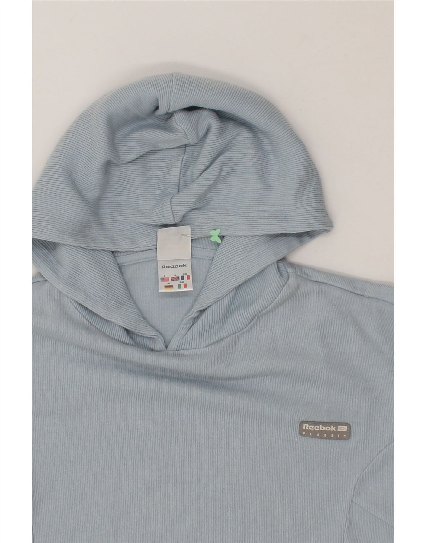 REEBOK Womens Hoodie Jumper UK 10 Small Blue Cotton