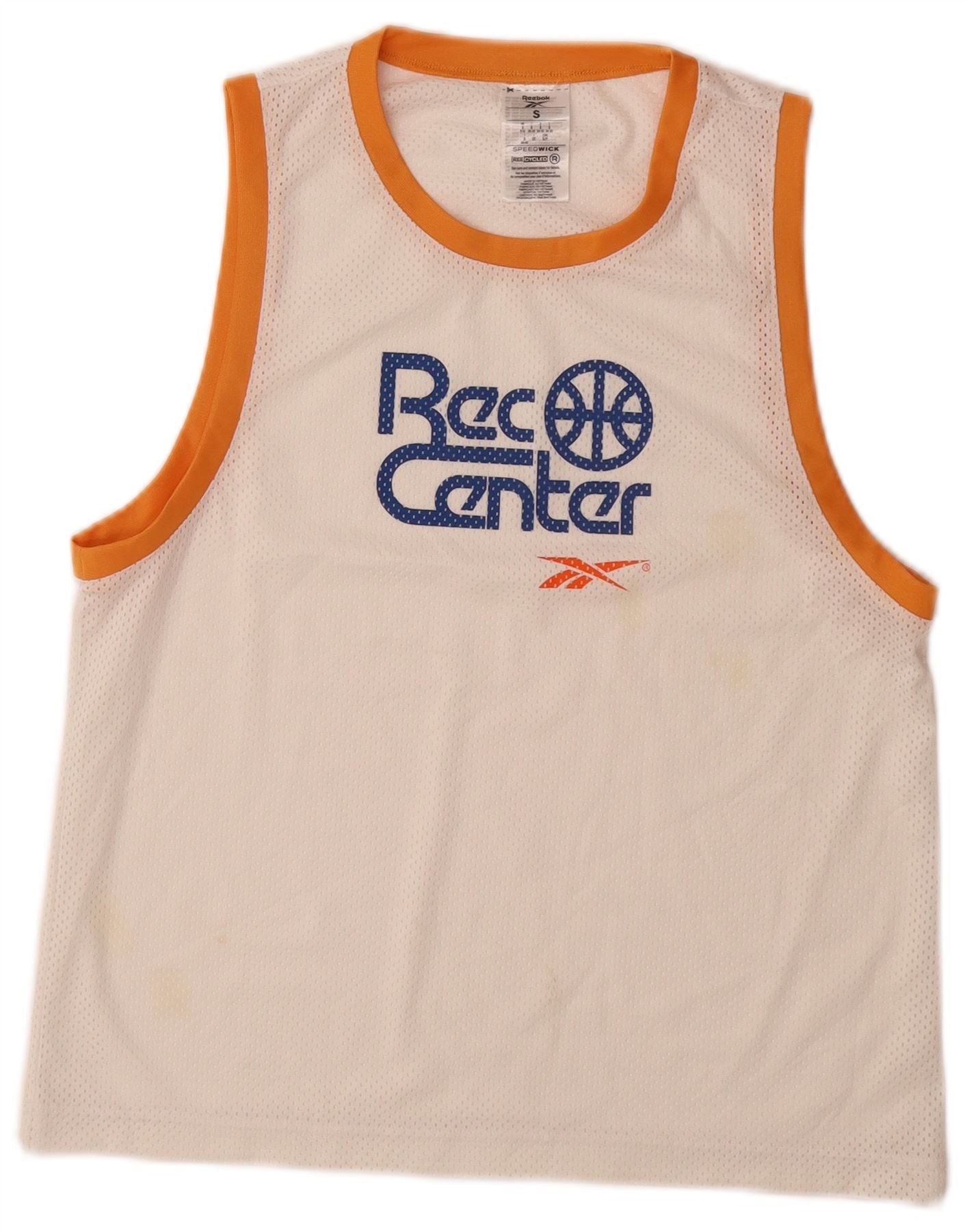 REEBOK Womens Loose Fit Graphic Vest Top UK 8/10 Small Off White Polyester