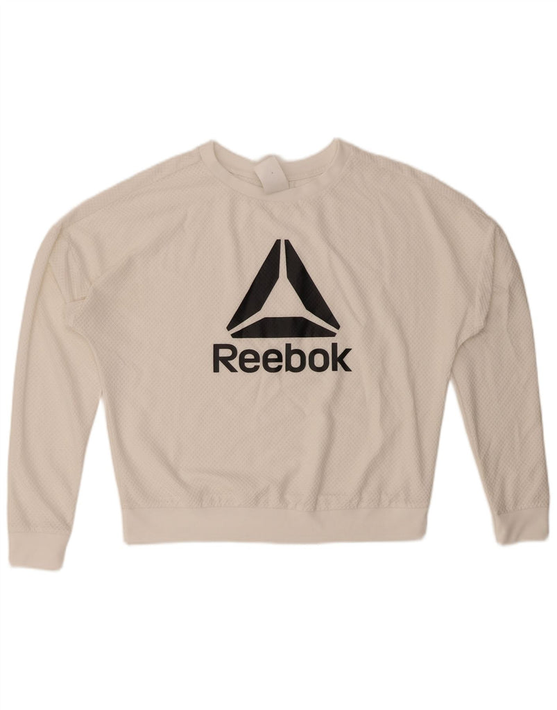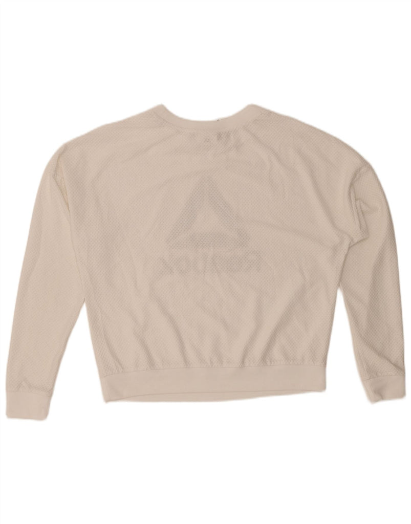 REEBOK Womens Oversized Graphic Sweatshirt Jumper UK 8/10 Small White