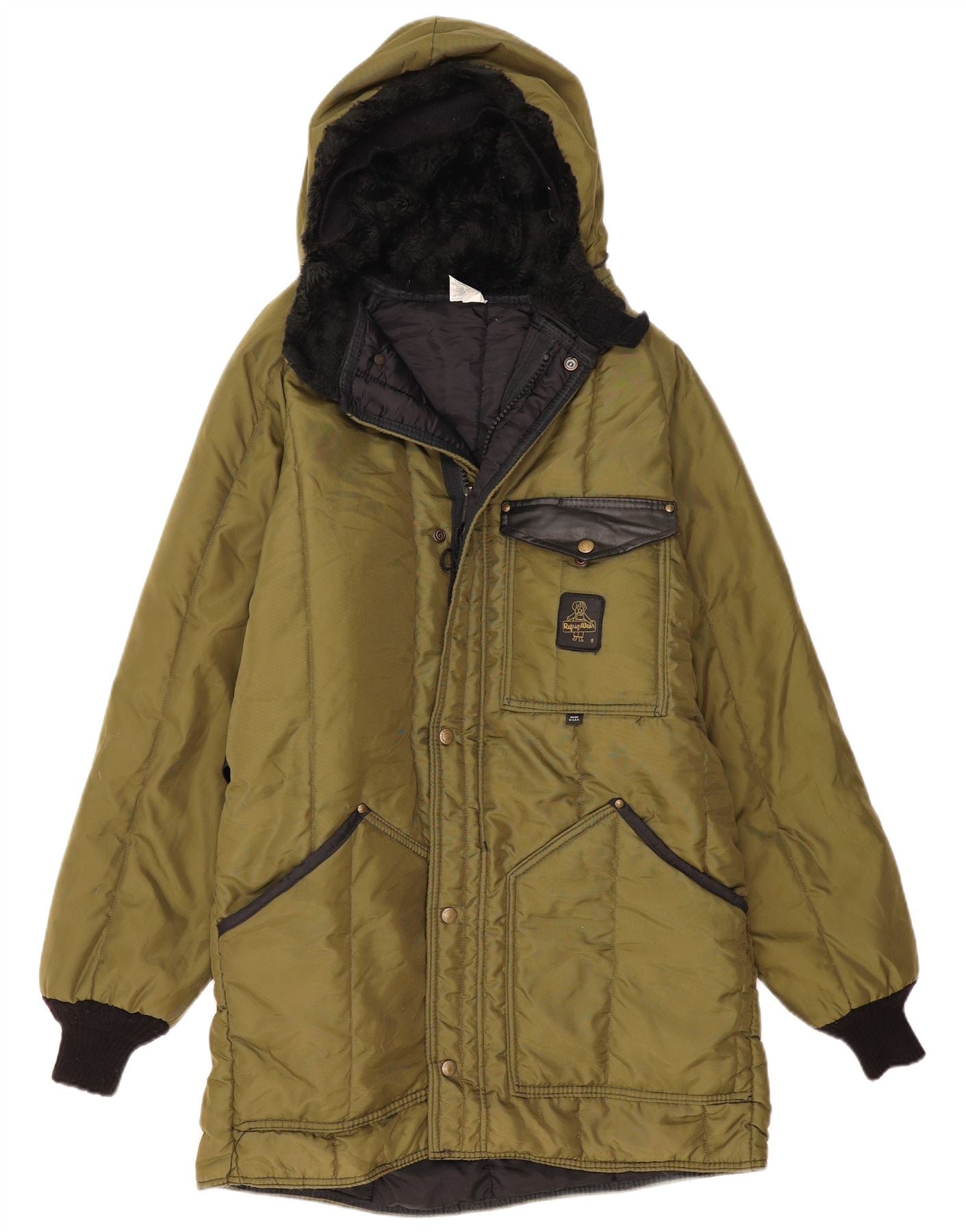 REFRIGIWEAR Mens Hooded Padded Coat UK 40 Large Khaki Nylon