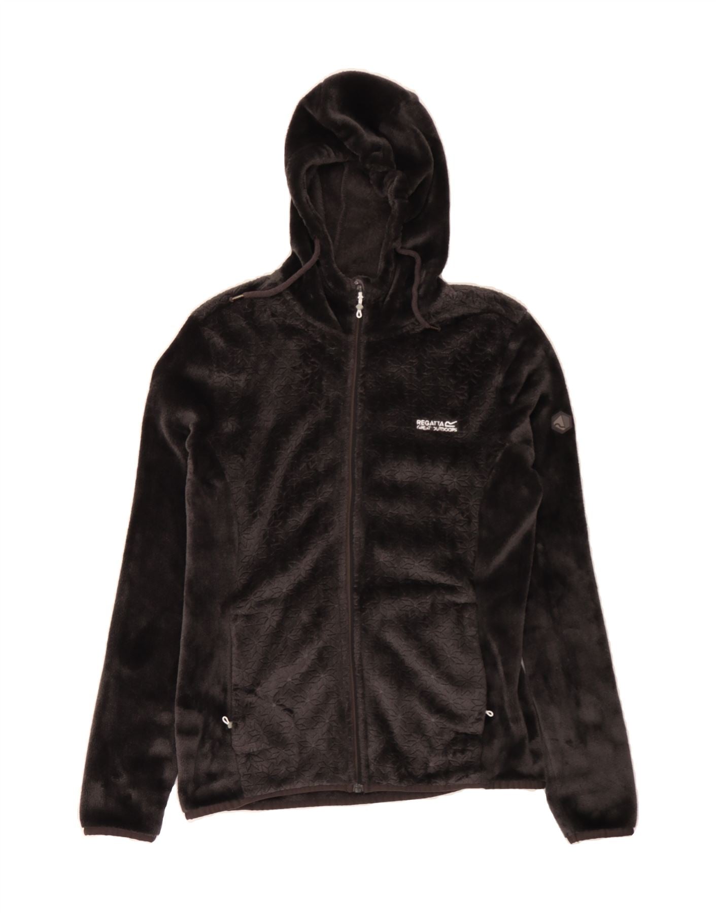 REGATTA Womens Hooded Fleece Jacket UK 12 Medium Grey Floral Polyester