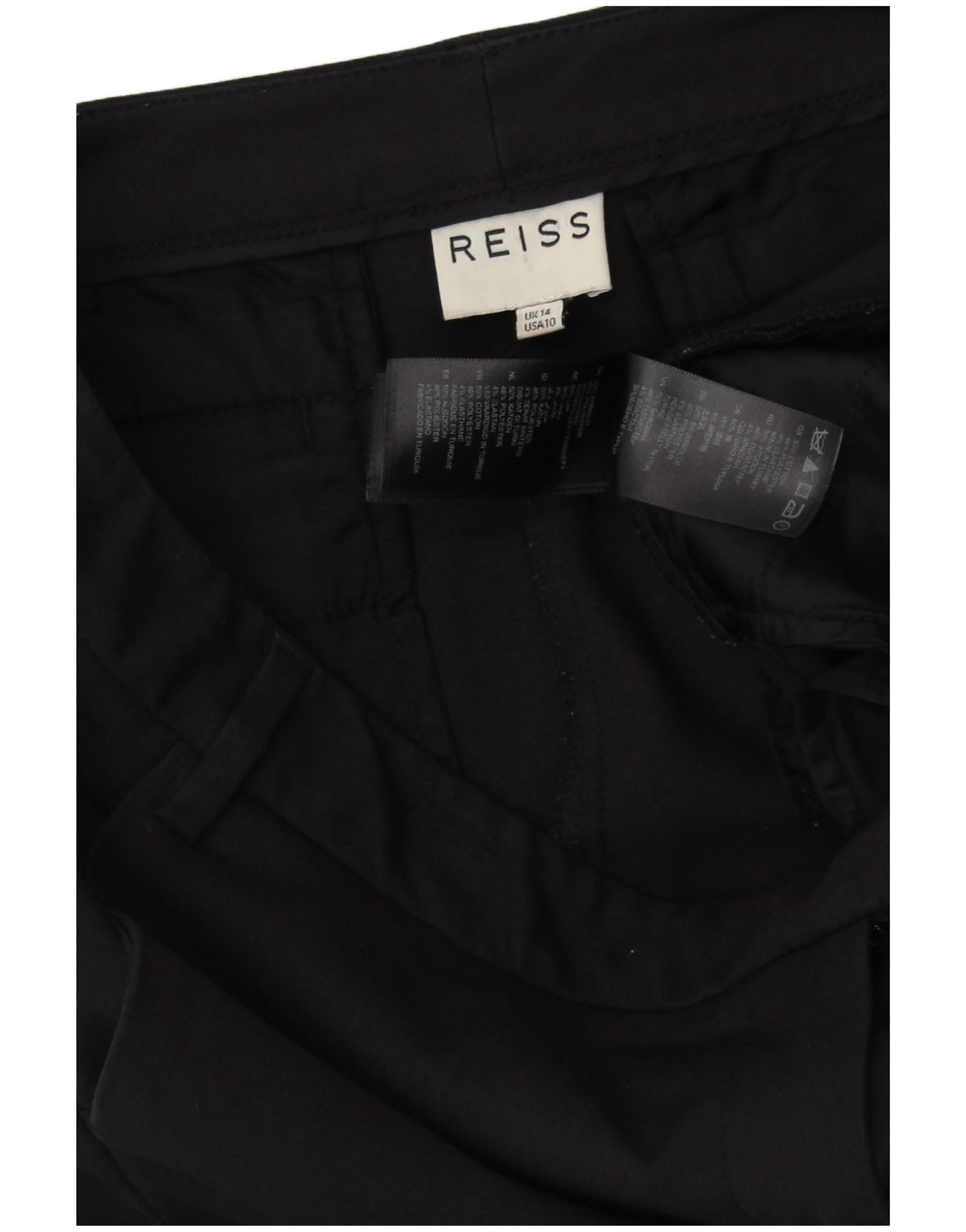 REISS Damen Slim Anzughose UK 14 Large W33 L27 Schwarze Baumwolle