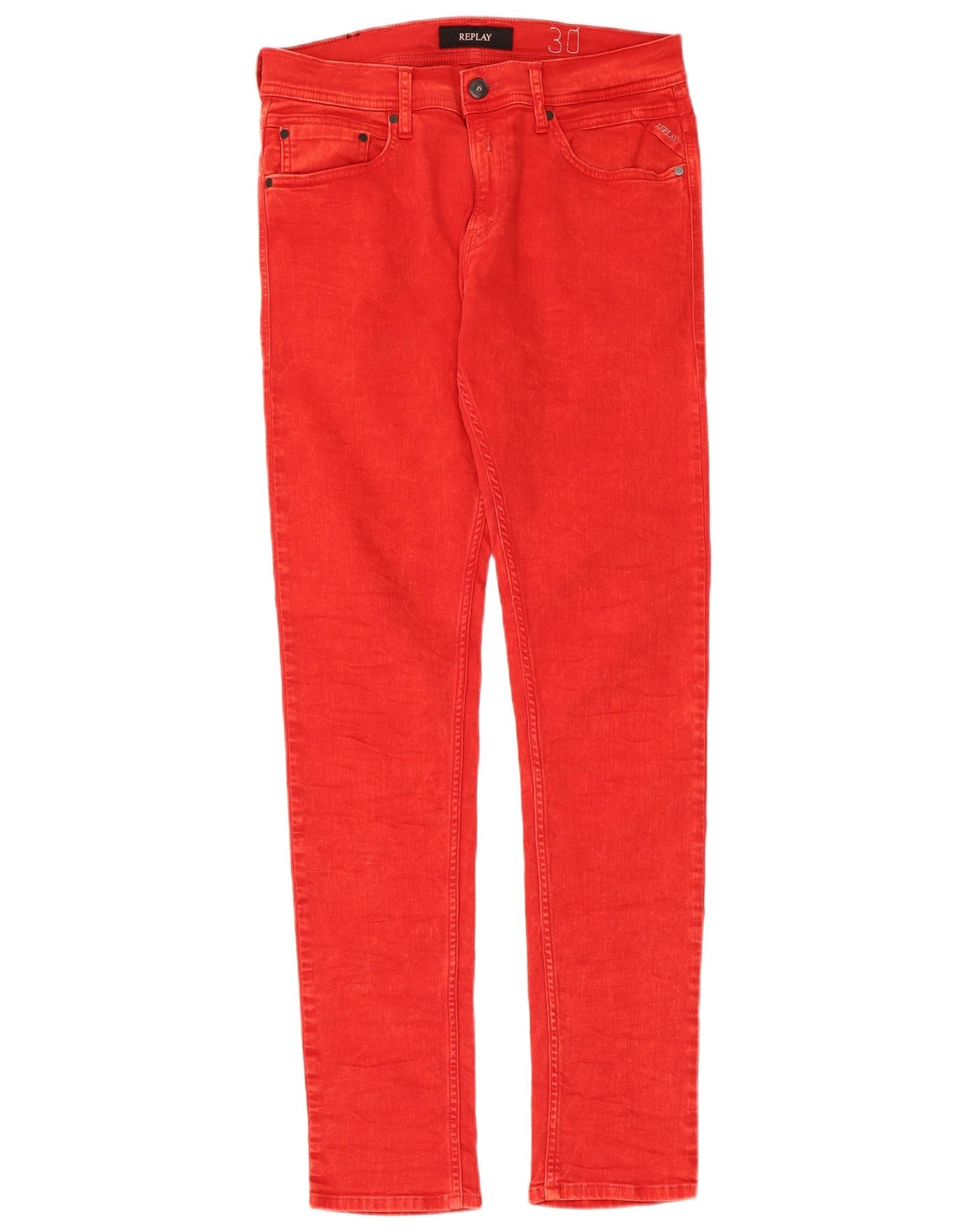 REPLAY Herren Skinny Jeans W30 L32 Rote Baumwolle
