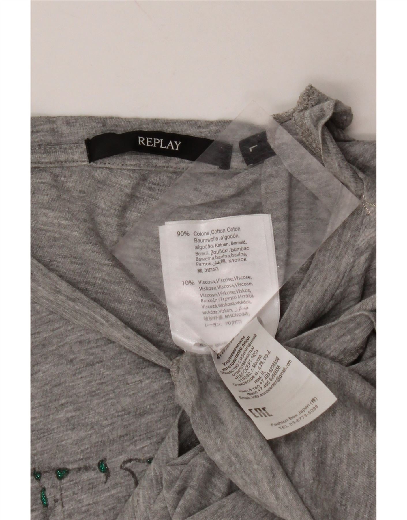 REPLAY Damen-T-Shirt mit Grafik, UK 16, Größe L, Grau, Baumwolle
