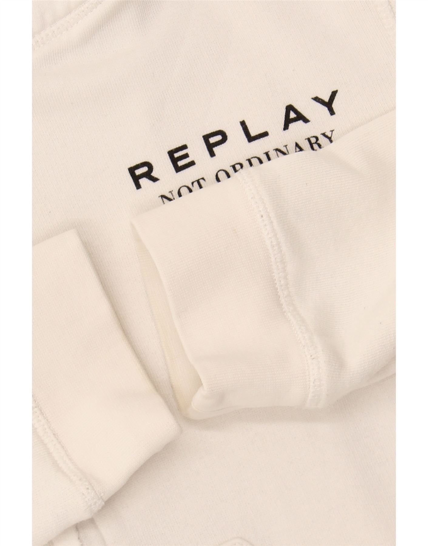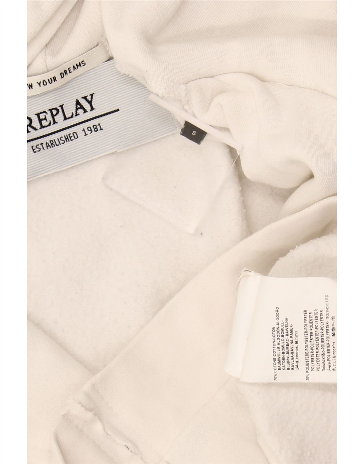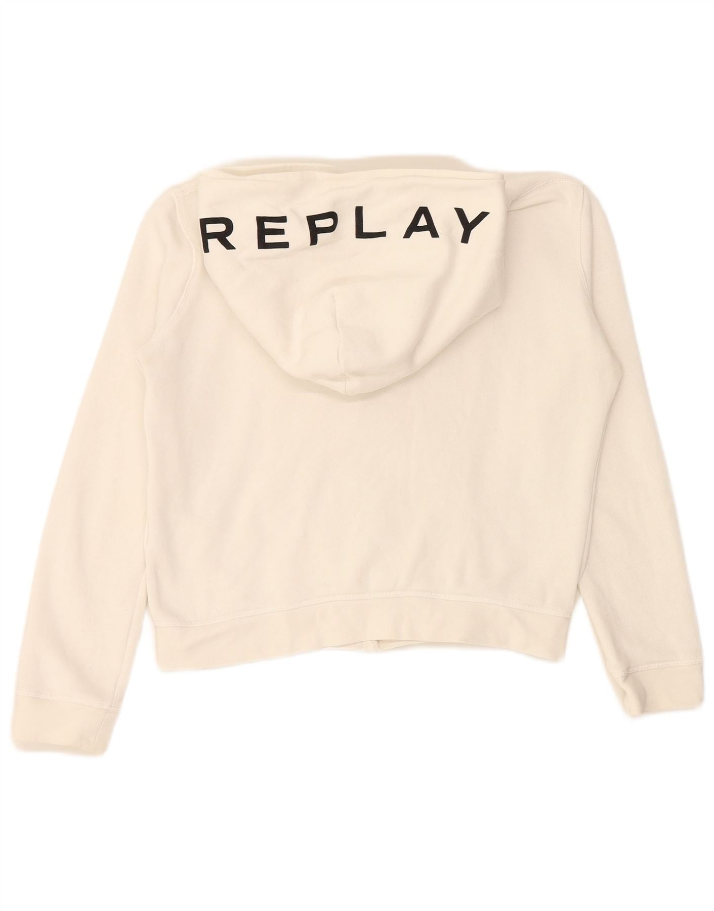 REPLAY Womens Oversized Crop Graphic Zip Hoodie Sweater UK 10 Small White