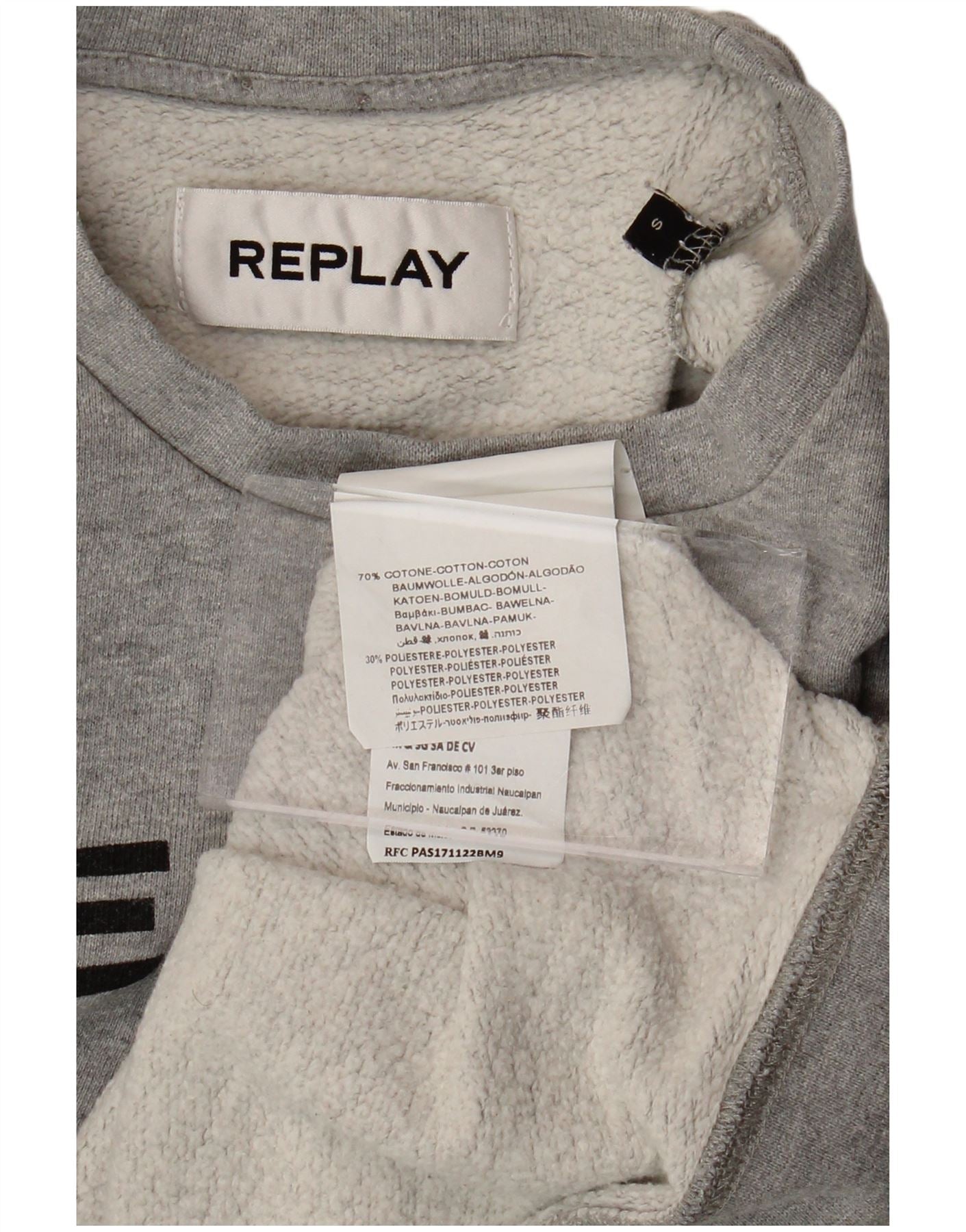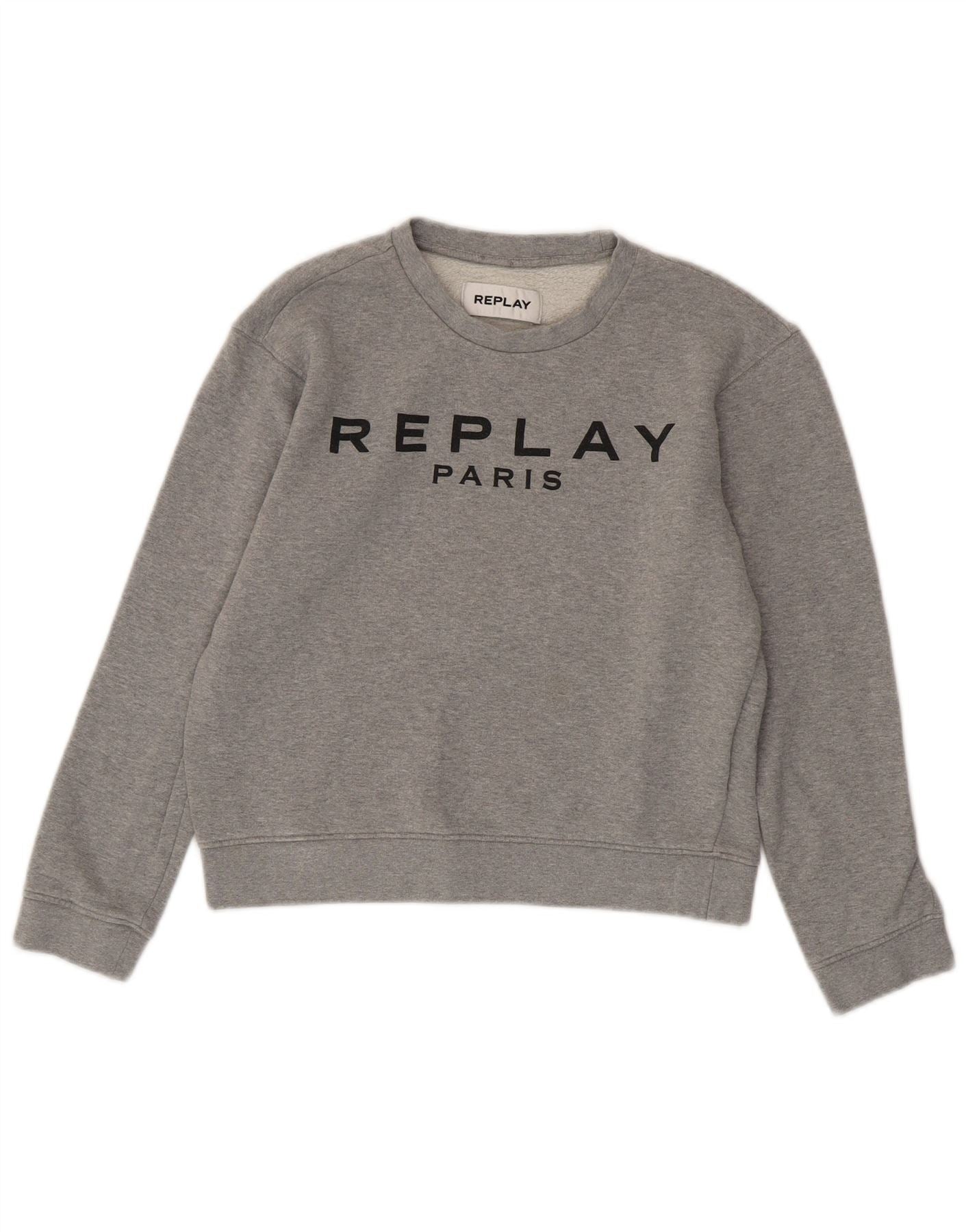 REPLAY Damen Paris Crop Graphic Sweatshirt Pullover UK 10 Small Grau Baumwolle