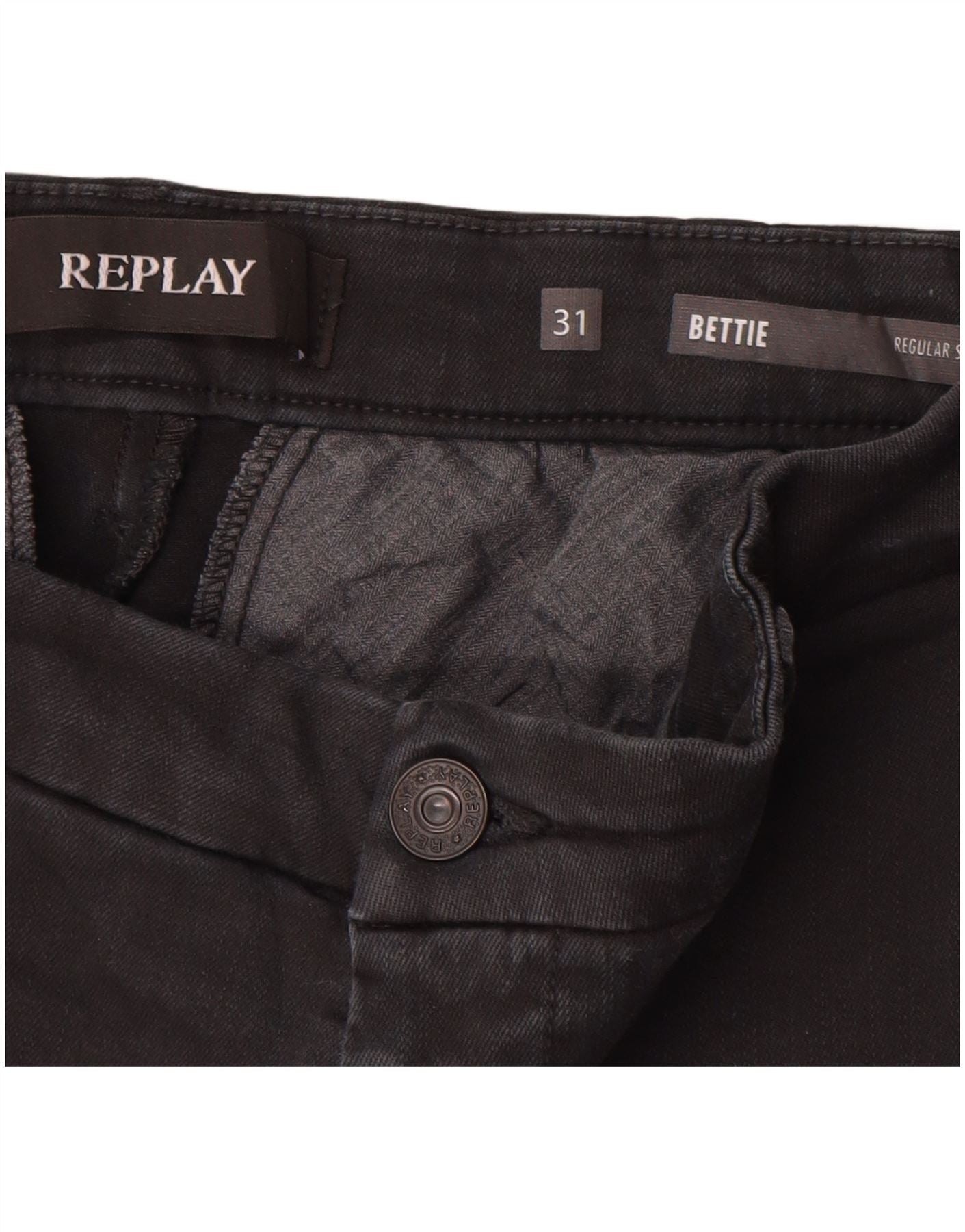 REPLAY Damen-Chinohose mit normaler Passform, W31, L29, schwarze Baumwolle