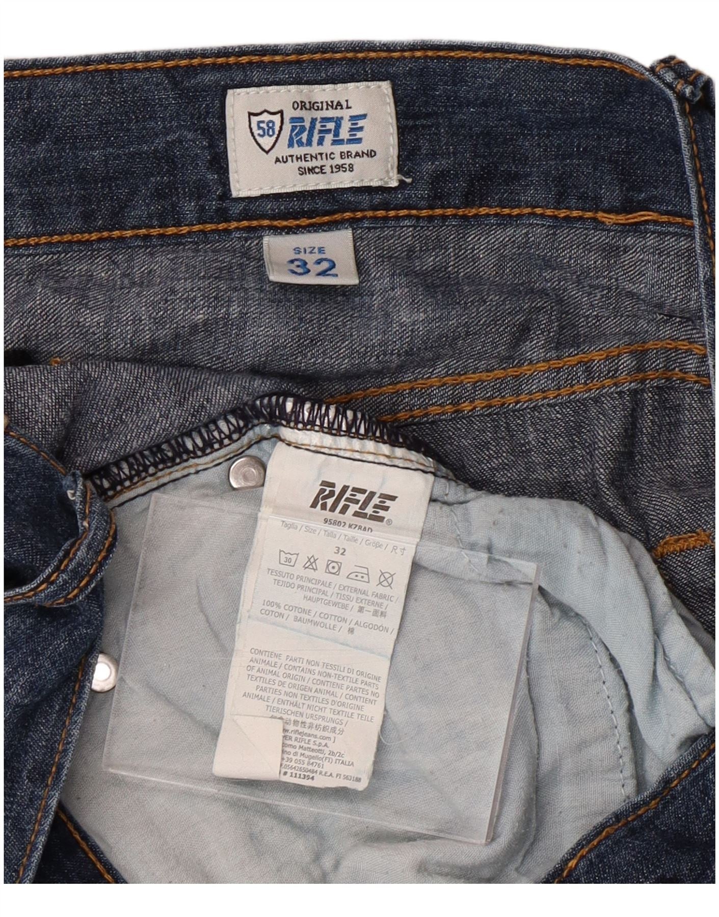 RIFLE Herren Straight Jeans W32 L33 Blaue Baumwolle