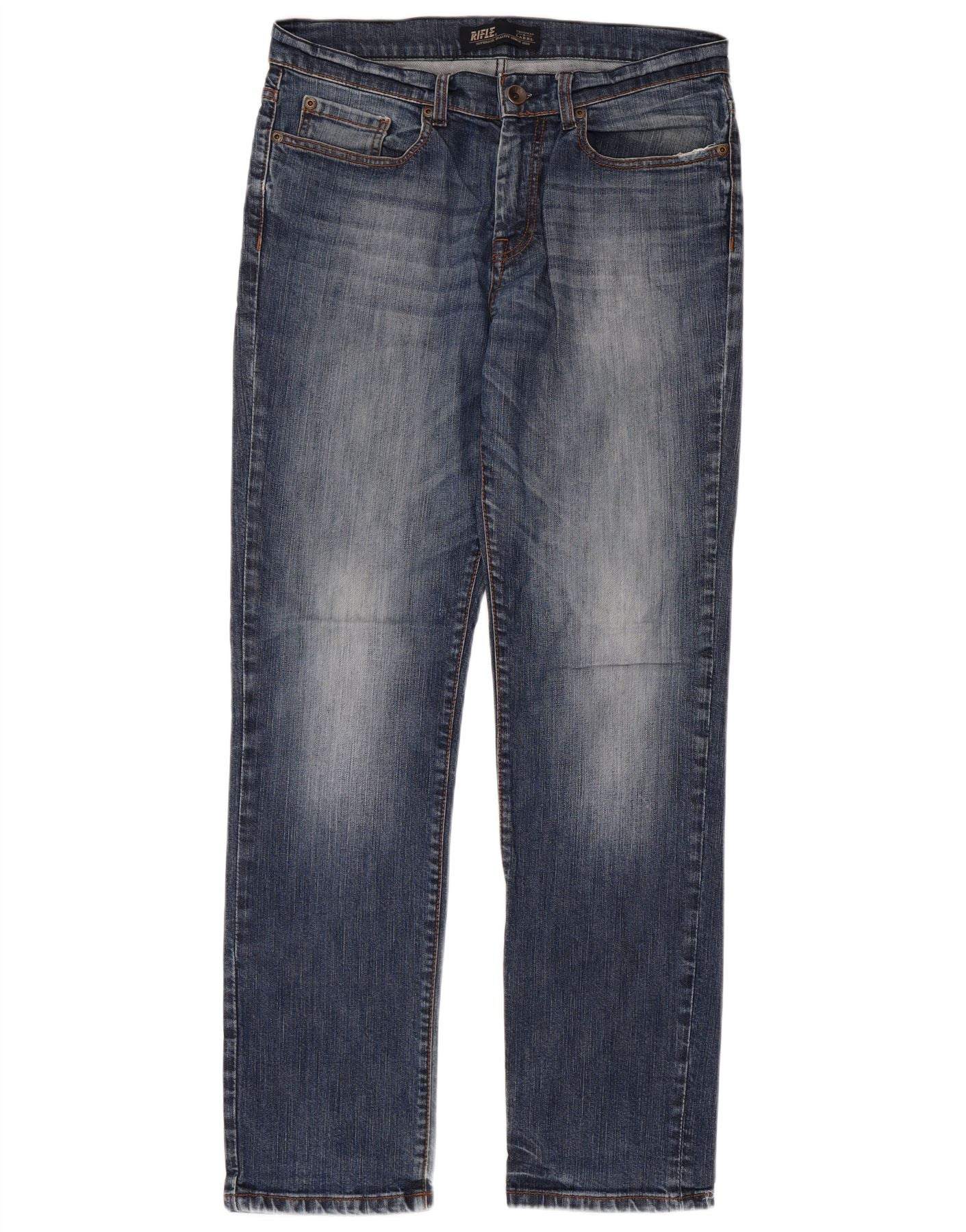 RIFLE Herren Straight Jeans W34 L33 Blaue Baumwolle
