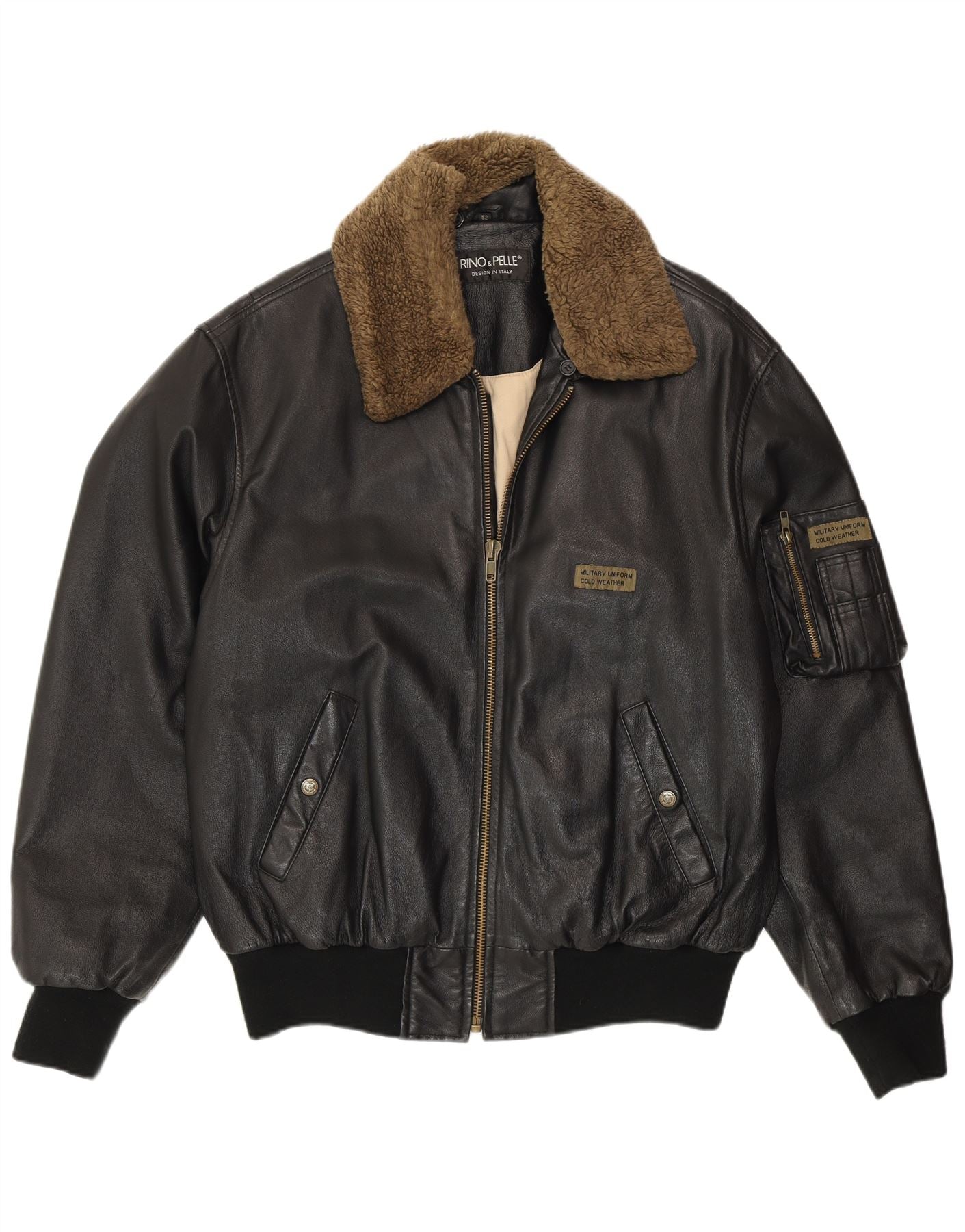 RINO & PELLE Herren Lederfliegerjacke IT 52 XL Schwarzes Leder