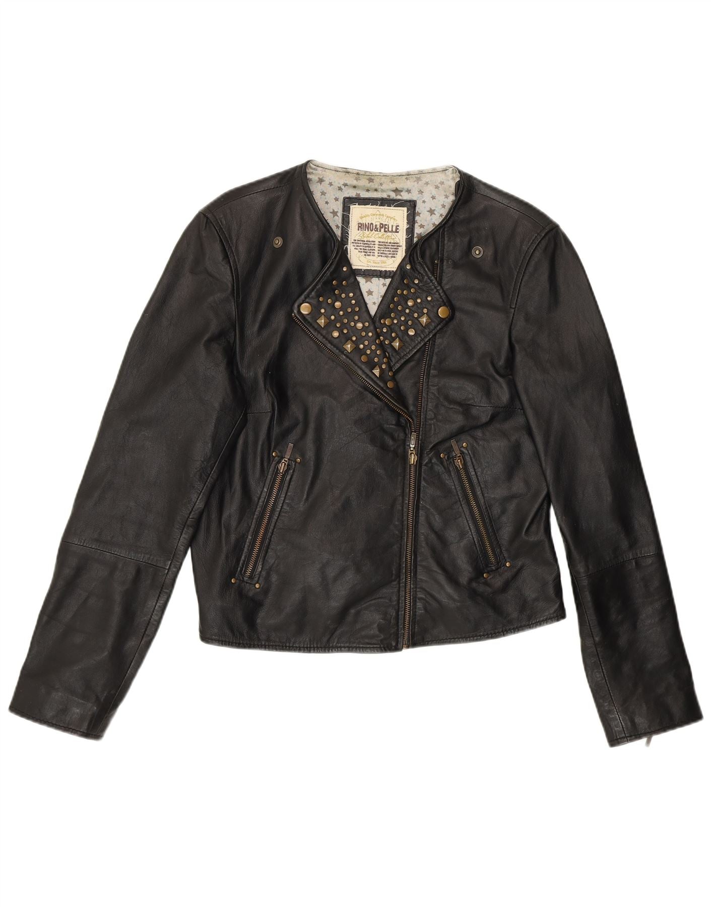 RINO & PELLE Damen Crop Biker Lederjacke UK 12 Mittelschwarzes Leder