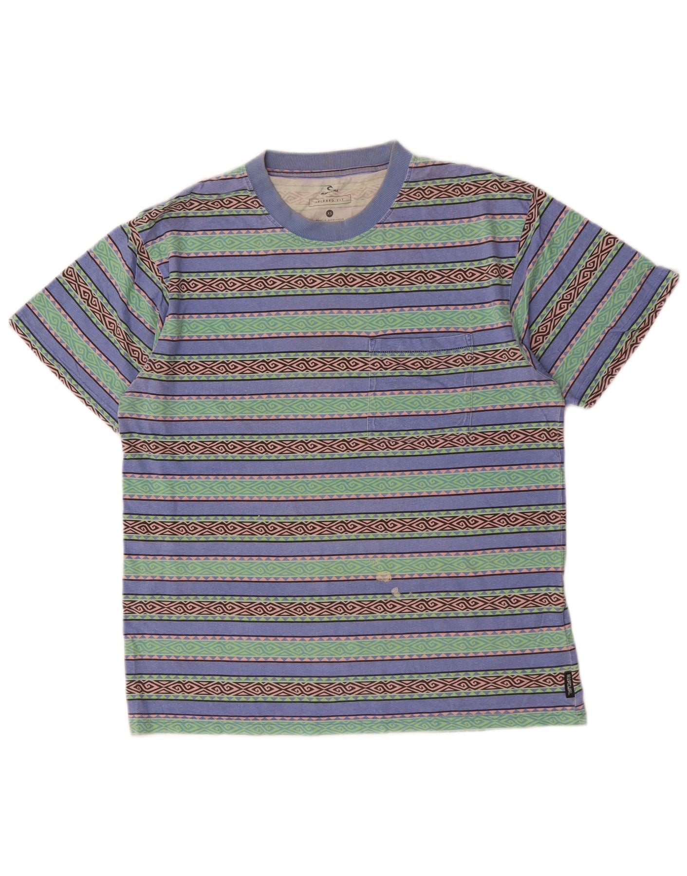 RIP CURL Herren Relaxed Fit T-Shirt Top XS Mehrfarbige geometrische Baumwolle