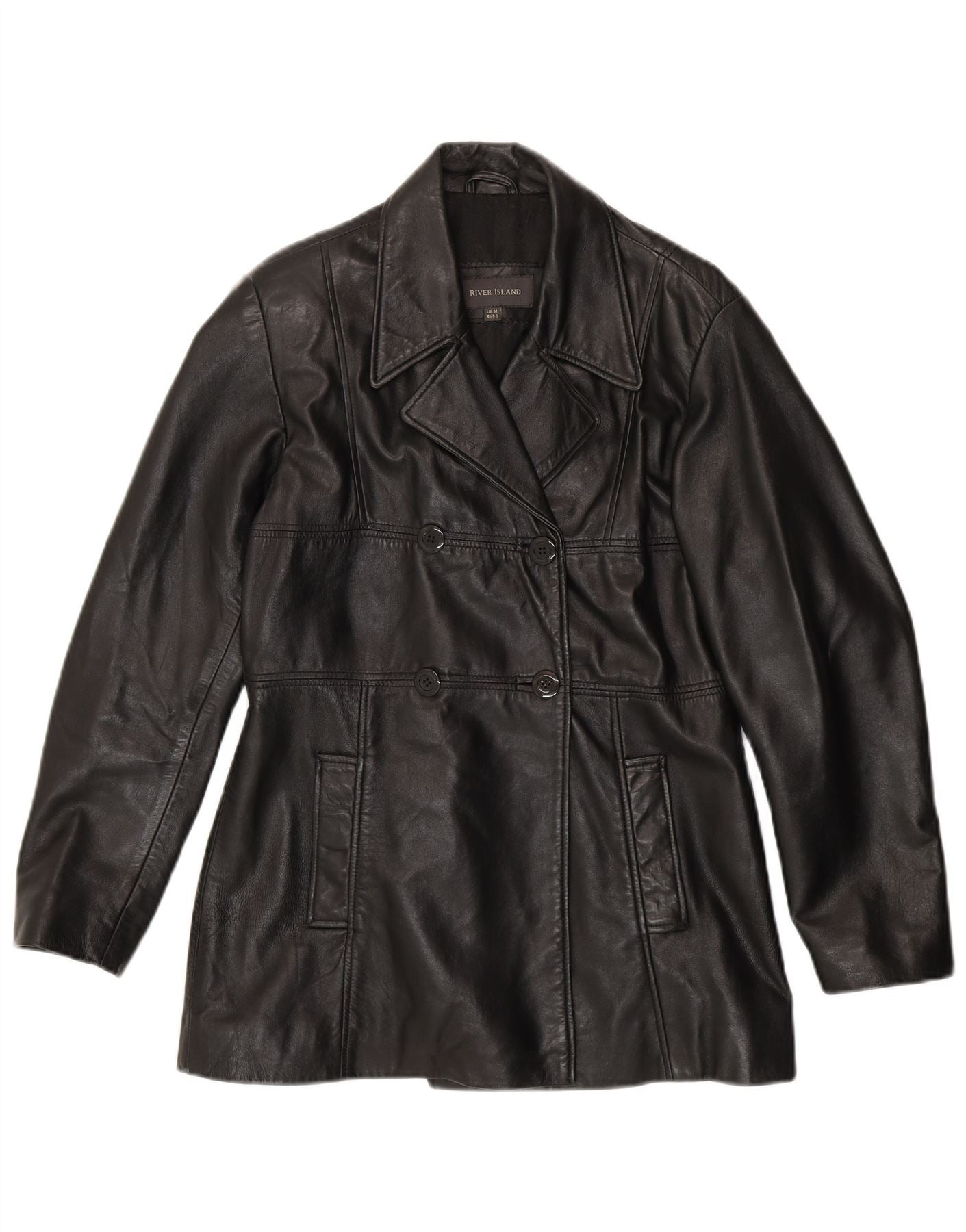 RIVER ISLAND Womens Double Breasted Jacket UK 14 Medium Black Leather