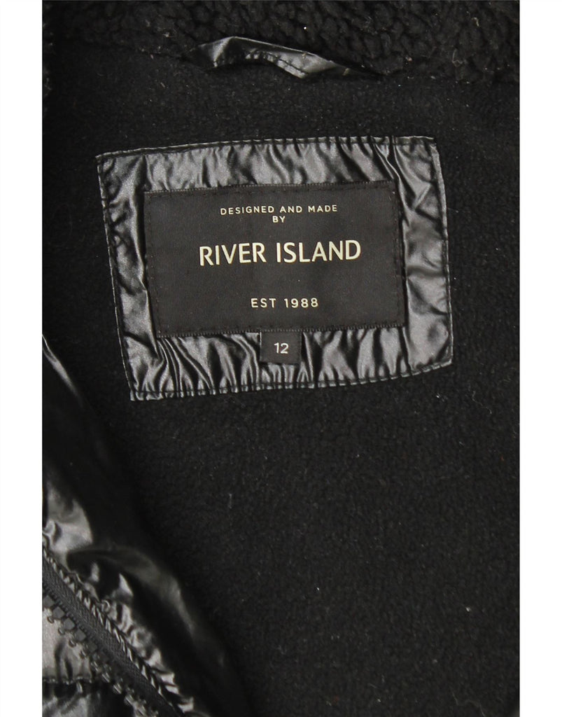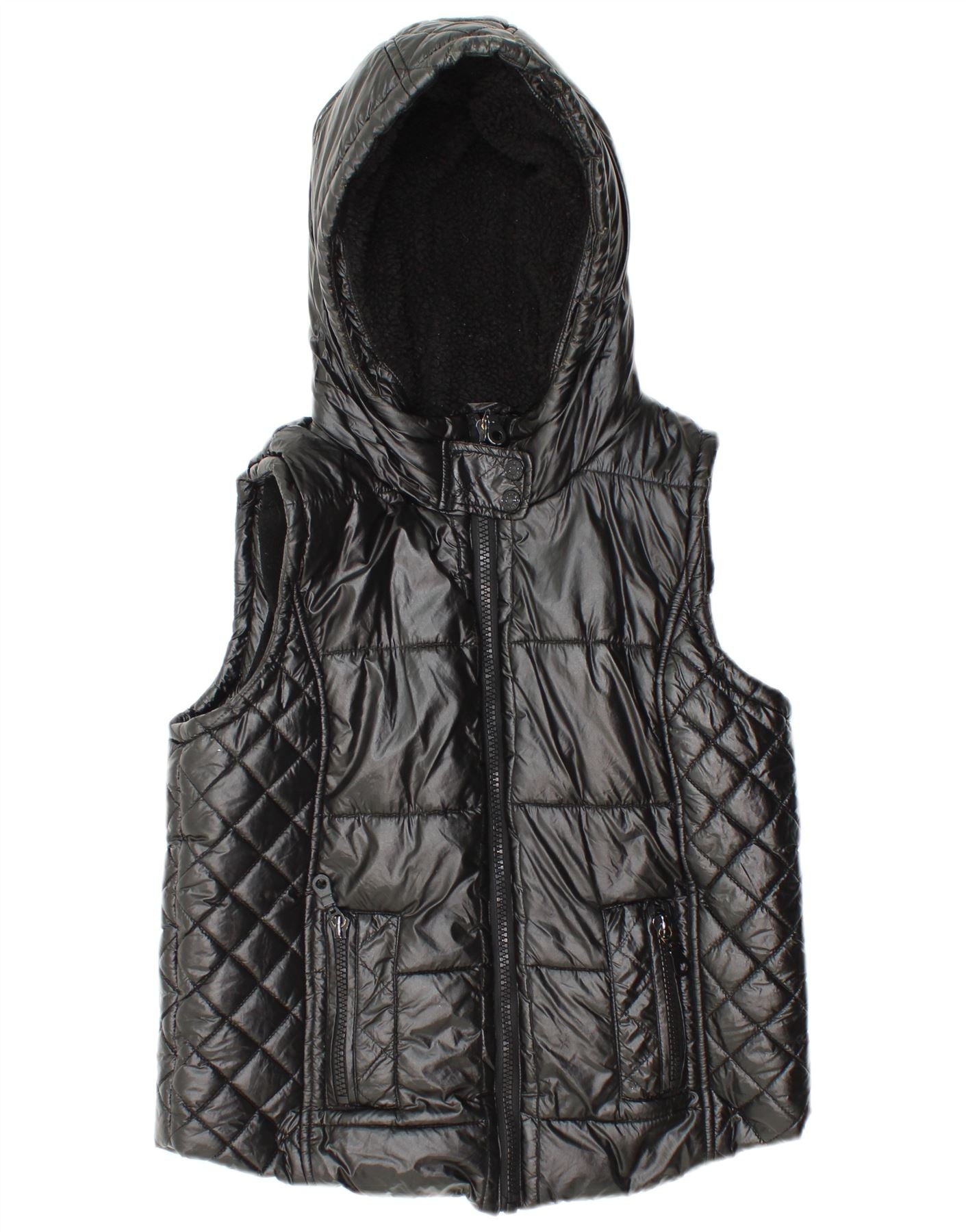 RIVER ISLAND Womens Hooded Padded Gilet UK 12 Medium Black Nylon