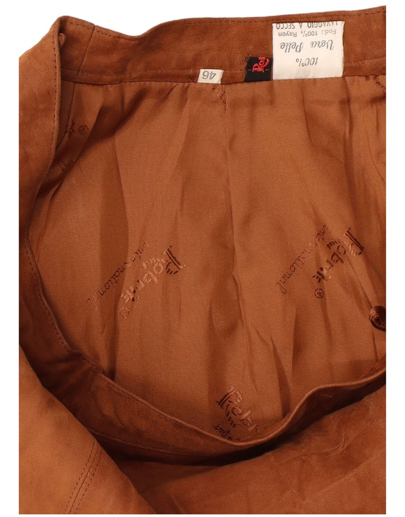 ROBRIK Damen A-Linien-Rock aus Wildleder mit hoher Taille, Größe 46, Größe L, W26, braunes Leder