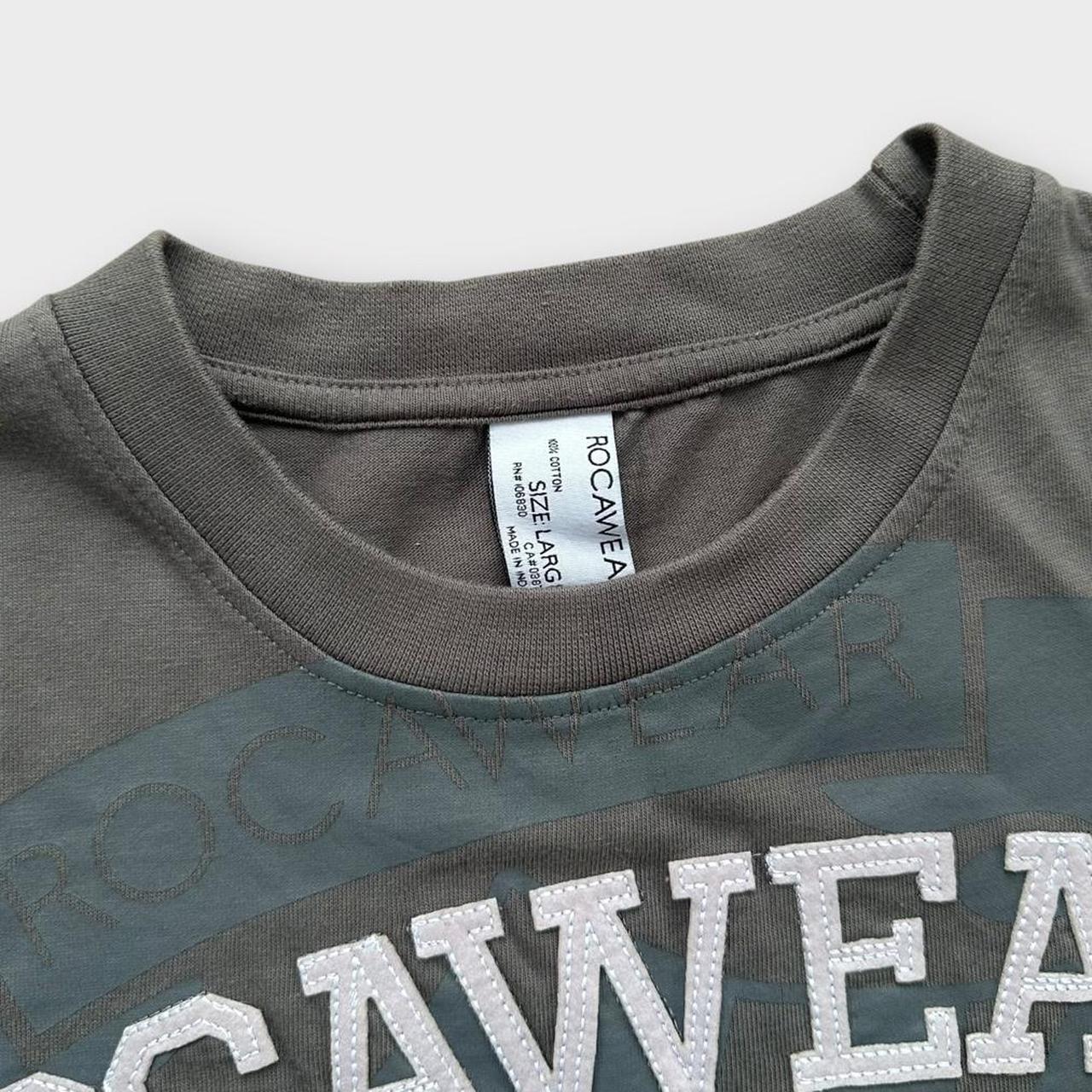 Rocawear-Hip-Hop-T-Shirt aus den frühen 2000er-Jahren in Grau mit Aufdruck und Stickerei auf der Brust