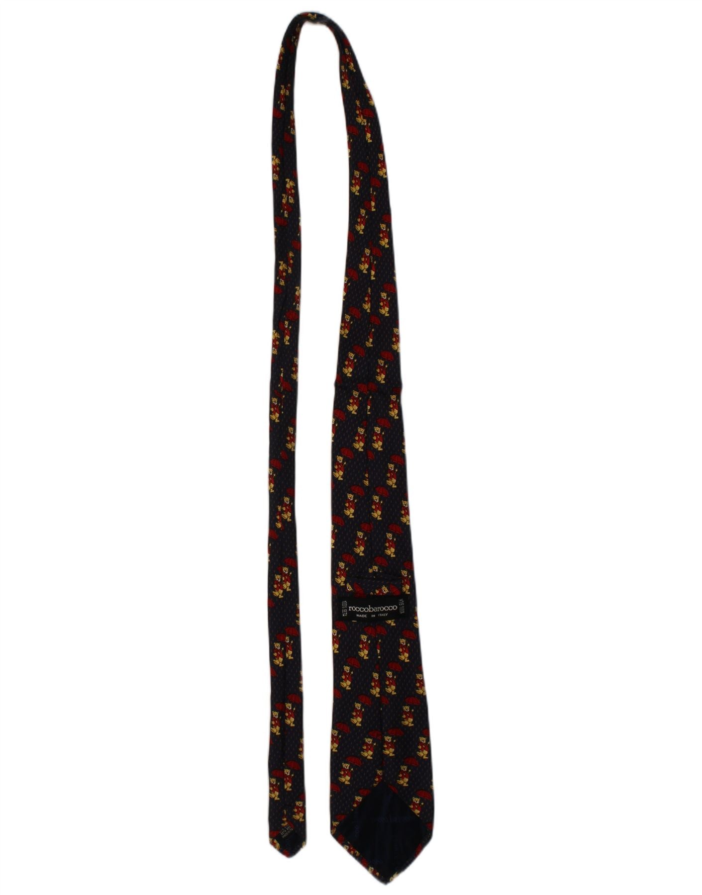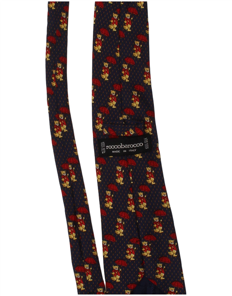 ROCCOBAROCCO Mens Graphic Tie One Size Navy Blue Animal Print Silk Novelty