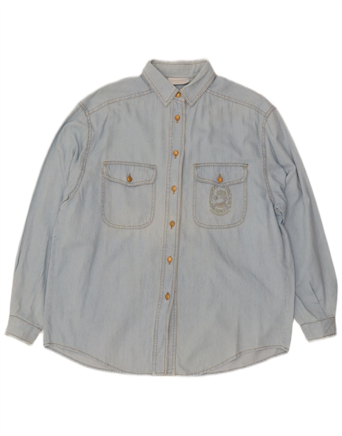 Roccobarocco Damen-Oversize-Jeanshemd IT 42 aus mittelblauer Baumwolle