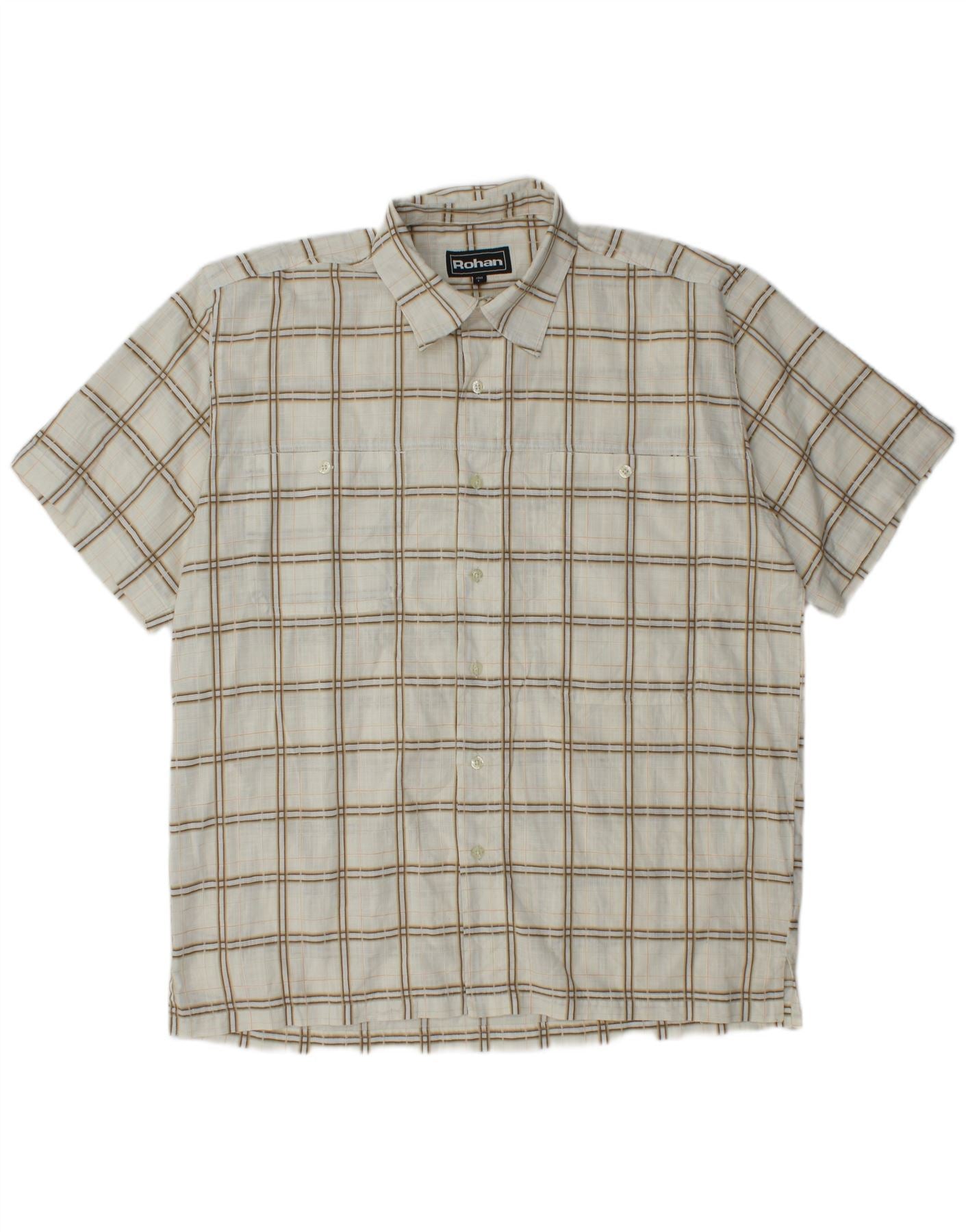 Rohan Herren-Kurzarmhemd, groß, cremefarbenes Karomuster aus Polyester