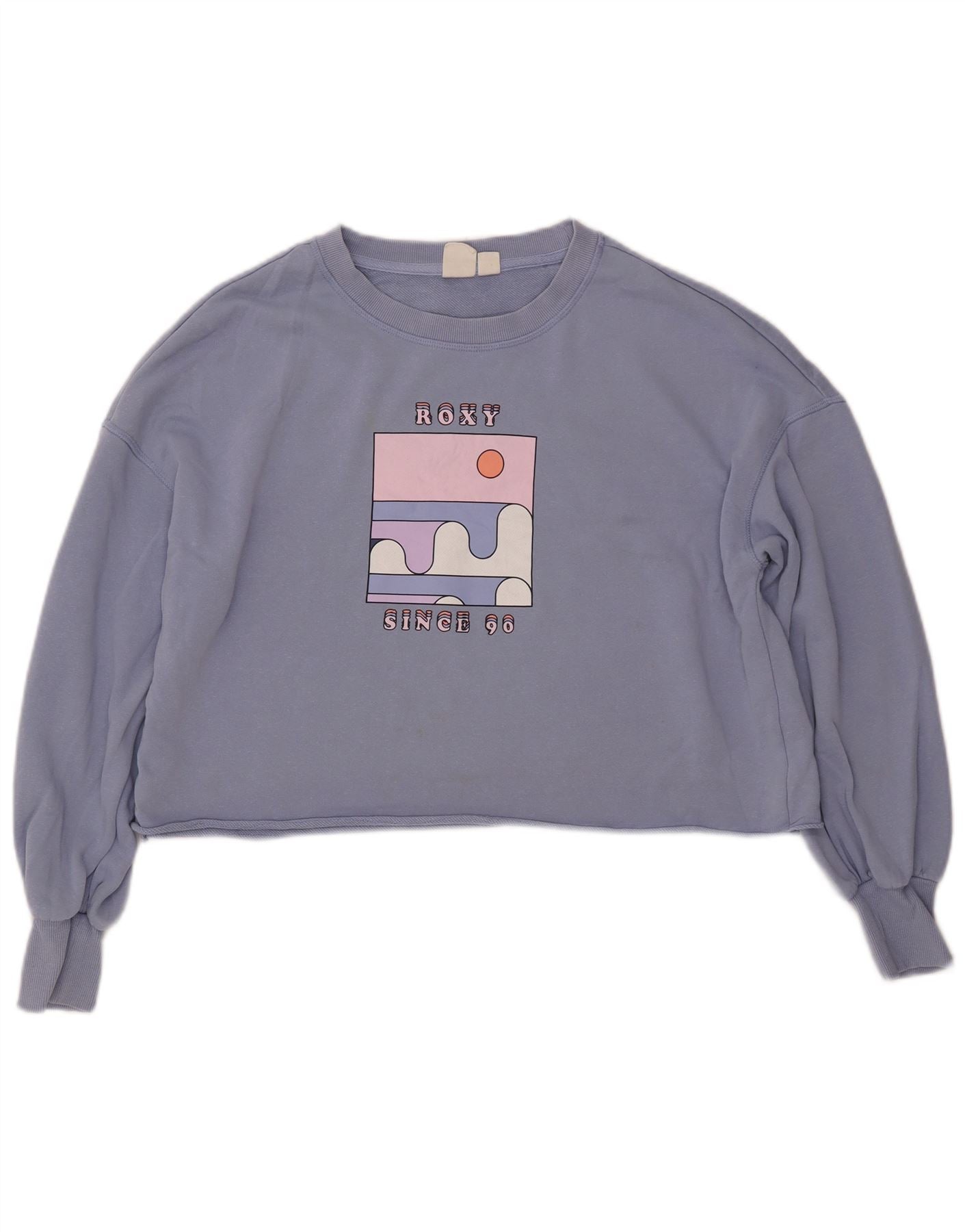 ROXY Womens Oversized Crop Graphic Sweatshirt Pullover UK 16 Large Blau